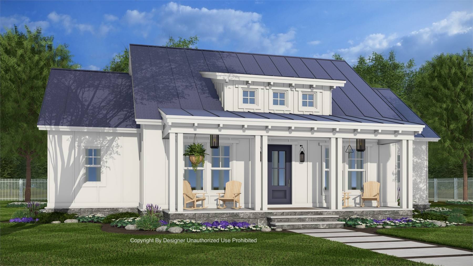 Plan 11363 is a farmhouse-inspired cottage that offers a well-organized, open layout designed for today’s lifestyles. The vaulted living and dining area serves as the home’s bright central hub, anchored by a fireplace and surrounded by large windows that fill the space with natural light. The kitchen includes a large island ideal for casual dining and entertaining, along with a nearby pantry for added storage. Three bedrooms are thoughtfully arranged—the primary suite enjoys a walk-in closet and private bath, while two secondary bedrooms, each with their own walk-in closets, share a full bathroom. Sliding doors lead to a rear covered porch that’s perfect for outdoor relaxation, and a practical mudroom off the kitchen includes a washer and dryer, storage cubbies, and the home’s water heater, all designed to keep the living areas clutter-free. Plan 11363 balances farmhouse charm with modern convenience in a comfortable single-level home.