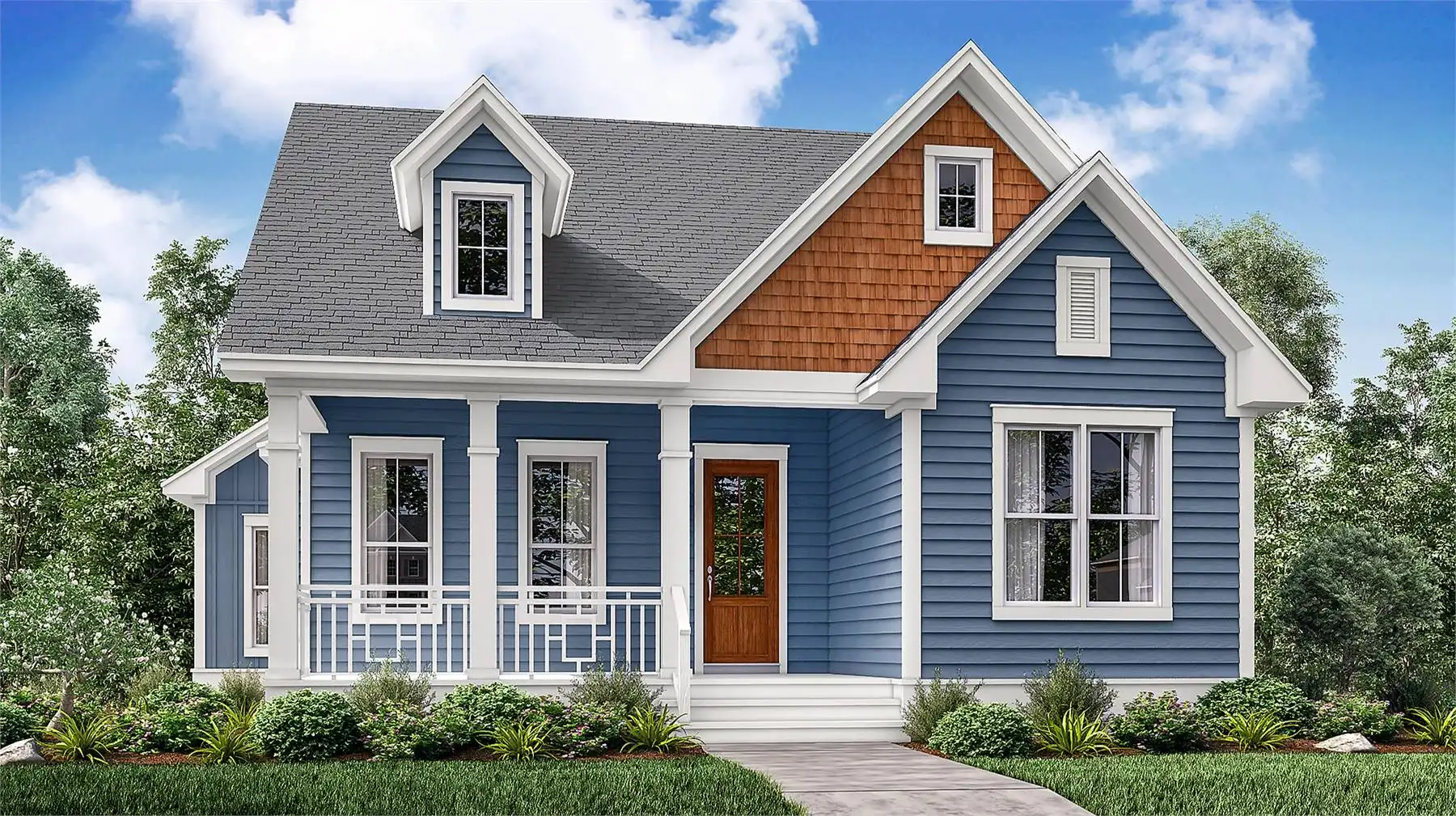 This charming 2,155 square feet design combines timeless style with modern convenience. It features 3 bedrooms and 2.5 baths, highlighted by a luxurious primary suite with a spa-like bath and an oversized closet. The heart of the home is its open layout, where the kitchen, dining, and great room flow together seamlessly. Spacious porches expand your living space outdoors, ideal for entertaining or simply enjoying fresh air. A mudroom entry with lockers and a large walk-in pantry keep the home running smoothly day to day. Specialty ceilings add elegance and personality throughout the interior. Blending Craftsman and Country elements, this home offers a warm and inviting atmosphere built for lasting family memories.