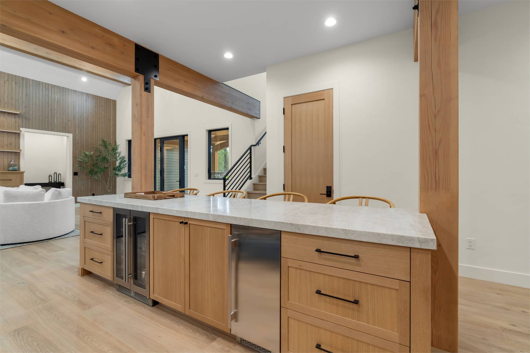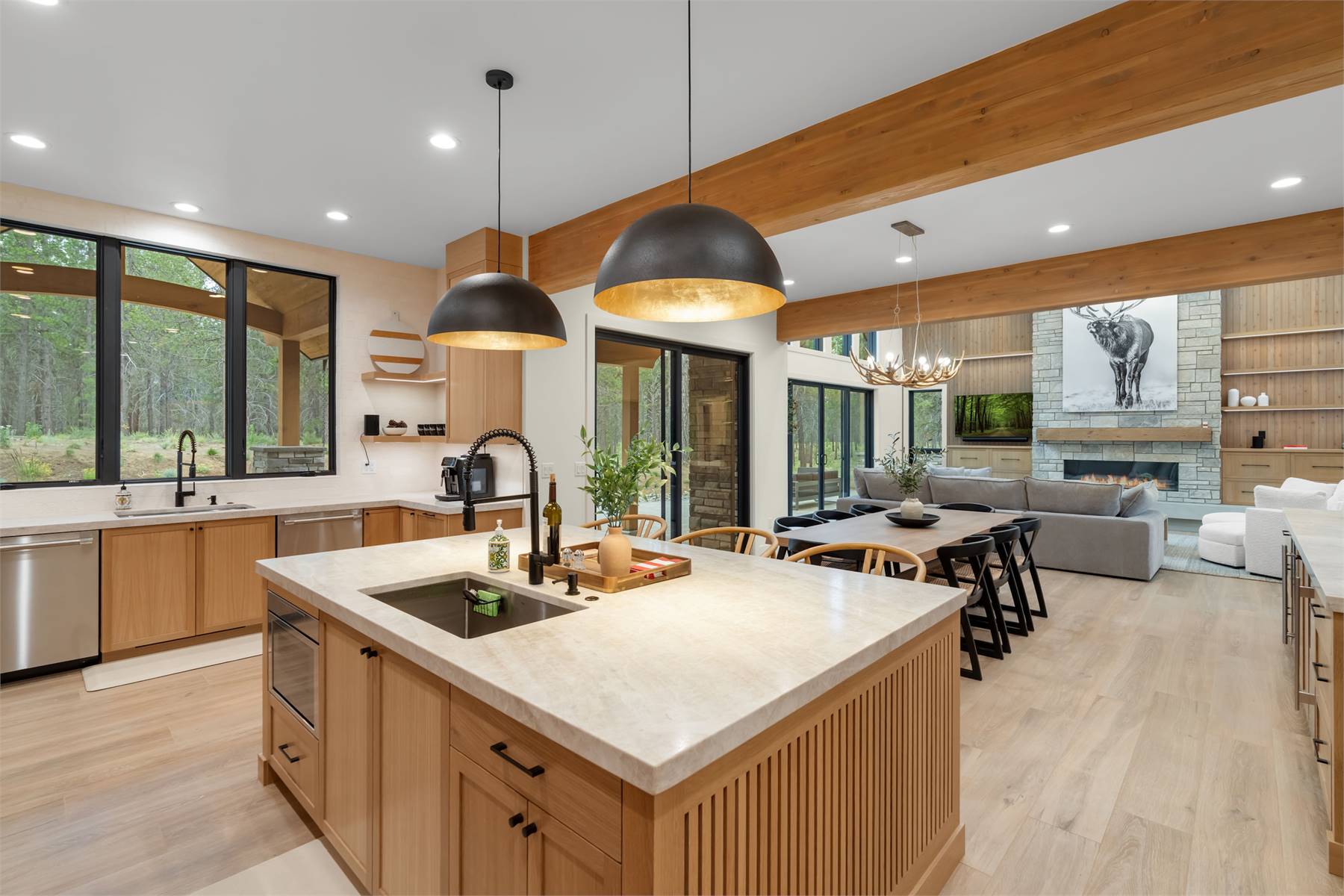 House Plan 11377 offers 4,466 square feet of refined mountain-style living, designed for families who value comfort, space, and timeless craftsmanship. The home opens with a covered entry and spacious foyer leading to the great room, where built-in shelving, a fireplace, and access to the rear terrace create a warm and inviting gathering space. The open concept design unites the dining area and gourmet kitchen, complete with a large L-shaped layout, central island with eating bar, built-in bar, and walk-in pantry. The right wing hosts the main-level primary suite with a spa-inspired ensuite and walk-in closet, along with a second bedroom featuring a private bath. The left wing includes a second primary suite with its own ensuite and walk-in closet, offering privacy and flexibility. A mudroom and utility space connect to the three-car garage for everyday convenience. Upstairs, two additional bedrooms each have private bathrooms, alongside a large bonus room and extra storage, expanding the home’s livability and entertainment options. Asher Hills is an elegant, mountain-inspired retreat designed to bring luxury and practicality together under one roof.