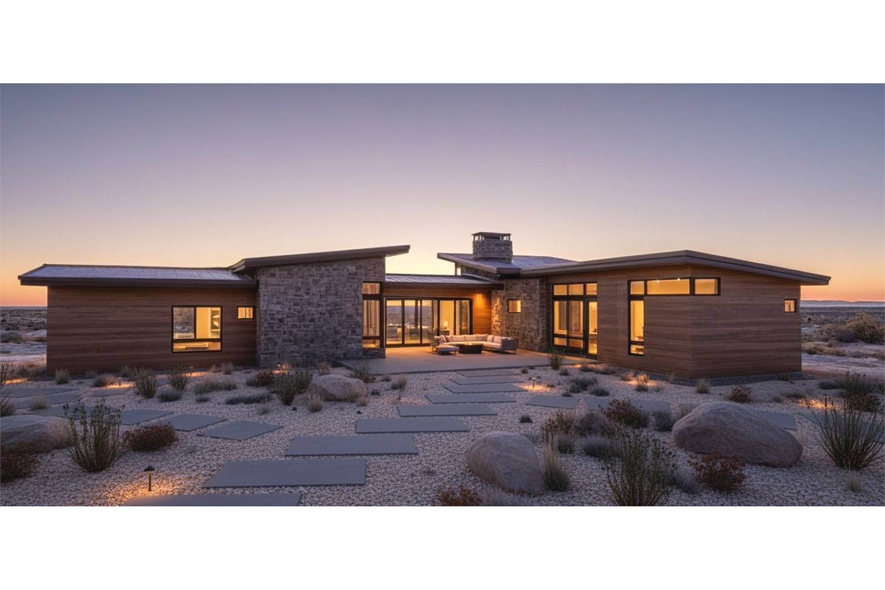 House Plan 11378 delivers 3,355 square feet of striking contemporary design, where clean lines meet modern luxury. The single-story layout begins with a welcoming foyer that opens to an expansive great room with a fireplace, flowing seamlessly into the U-shaped kitchen and central dining space with a built-in bar and buffet. A convenient mudroom and laundry area connect to the three-car garage, making daily living effortless. The primary suite occupies its own private wing, featuring a spa-like bath, generous walk-in closet, and a secluded study. On the opposite side, two bedrooms with ensuite baths are complemented by a spacious game room. Outdoor living takes center stage with a large terrace and courtyard—ideal for entertaining, dining al fresco, or adding a hot tub or sauna. Designed for both elegance and ease, this home offers modern living at its finest.