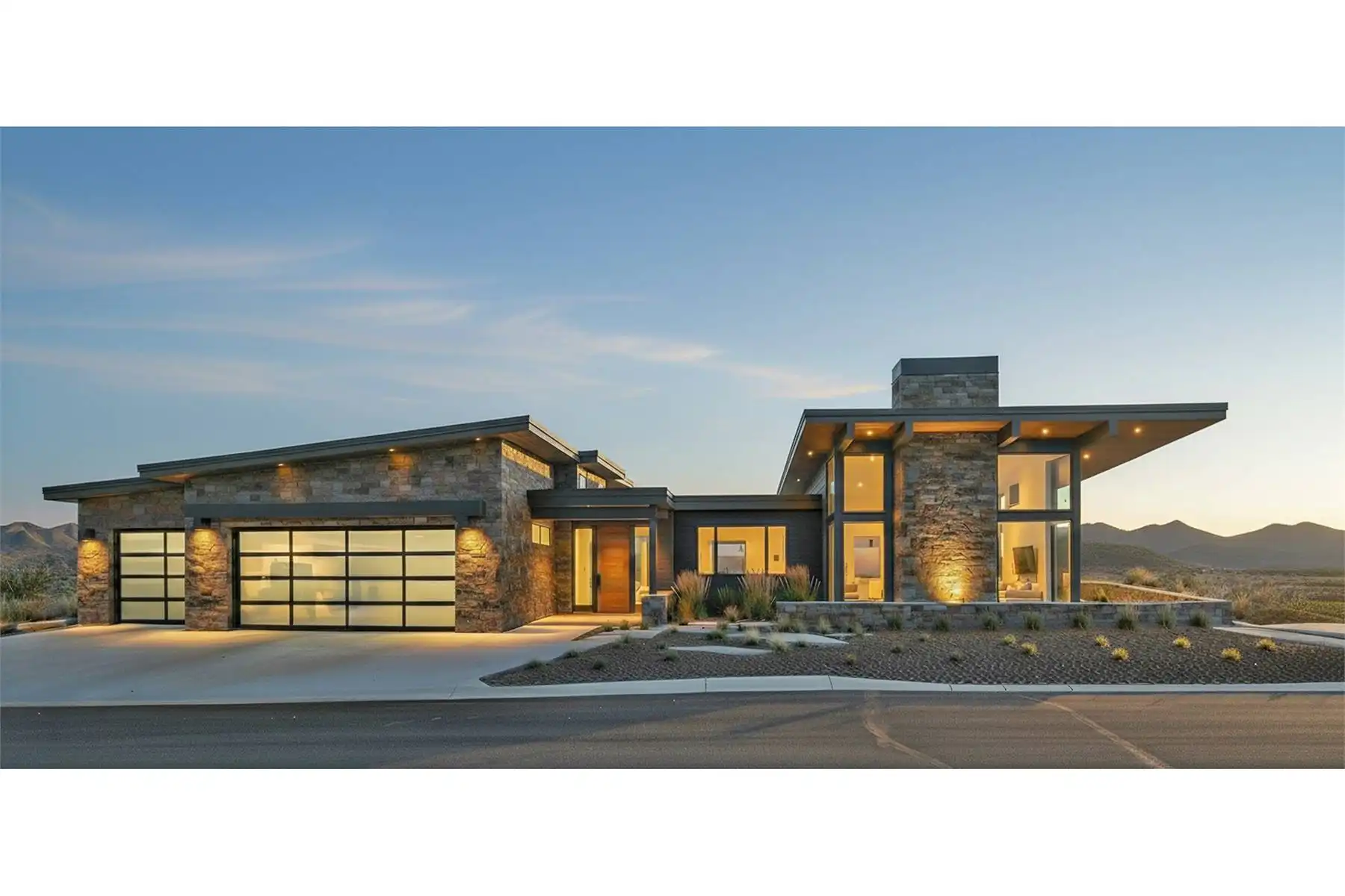 House Plan 11378 delivers 3,355 square feet of striking contemporary design, where clean lines meet modern luxury. The single-story layout begins with a welcoming foyer that opens to an expansive great room with a fireplace, flowing seamlessly into the U-shaped kitchen and central dining space with a built-in bar and buffet. A convenient mudroom and laundry area connect to the three-car garage, making daily living effortless. The primary suite occupies its own private wing, featuring a spa-like bath, generous walk-in closet, and a secluded study. On the opposite side, two bedrooms with ensuite baths are complemented by a spacious game room. Outdoor living takes center stage with a large terrace and courtyard—ideal for entertaining, dining al fresco, or adding a hot tub or sauna. Designed for both elegance and ease, this home offers modern living at its finest.