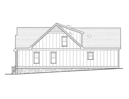 With the master bedroom on the main floor this modest cottage is perfect for the single adult or empty nester couple. The closet expands under the staircase creating extra storage. The master bath is designed to meet wheelchair accessibility making this ideal for aging in place. Two bedrooms and a sitting area with expandable attic spaces complete the second floor providing everything needed for a future family or those occasional guests.