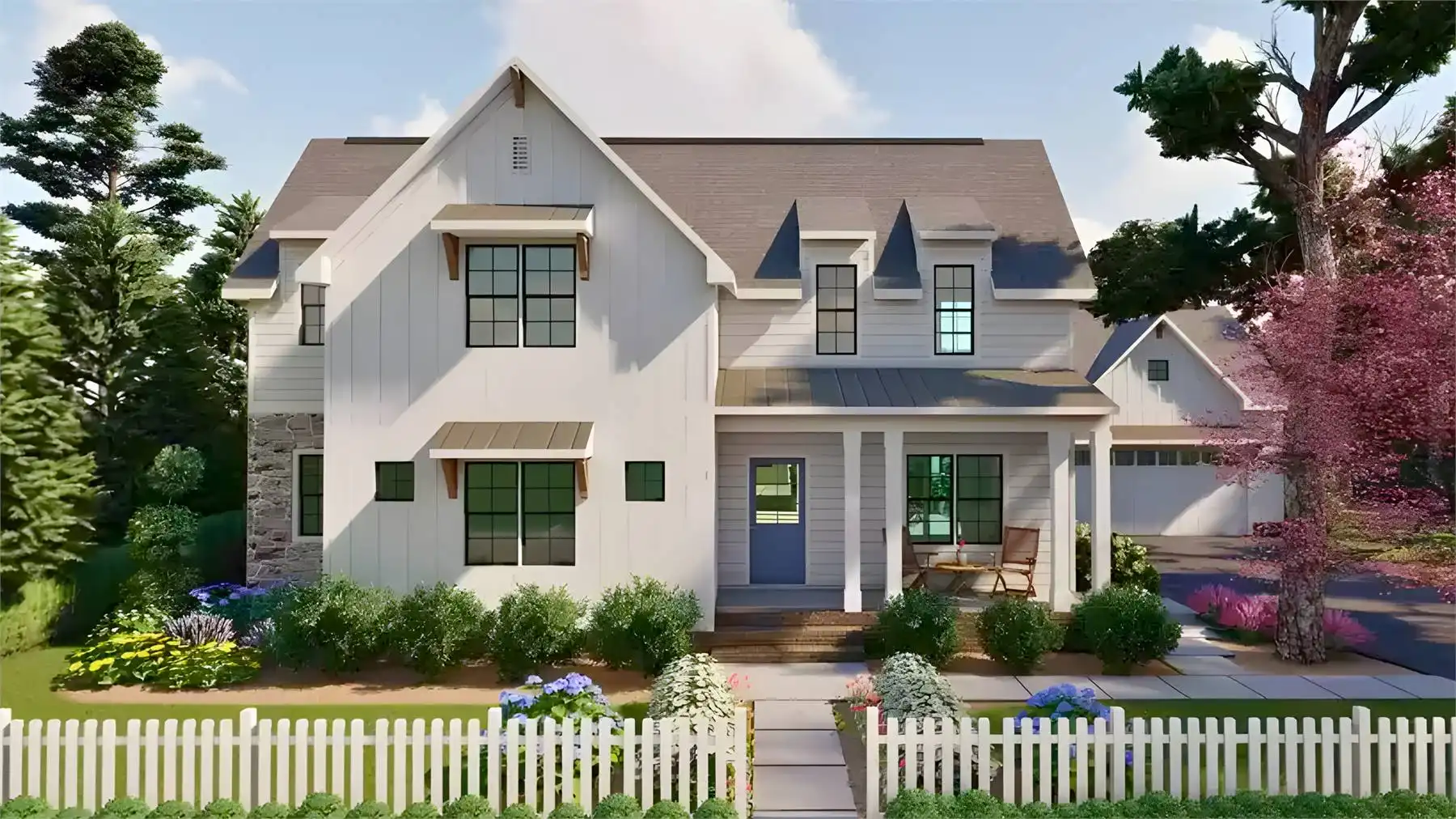 If you need a large farmhouse for your growing family, give House Plan 11385 a try! This home offers 3,600 square feet with five bedrooms and three-and-a-half bathrooms across its two-story layout. The main level has a traditional feel with an office and a formal dining room flanking the foyer, the island kitchen beside a breakfast area, and a vaulted living area tucked away in back. There's also a luxurious five-piece primary suite with its own laundry in the walk-in closet as well as ample outdoor space on the deck that connects the house to the two-car garage. Upstairs, you'll find another primary suite with a four-piece bath, three bedrooms that share a four-piece hall bath, and the laundry room spread around the loft. As you can imagine, this design is perfect for large families and hosting!