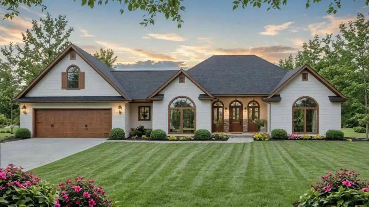 House Plan 11392 combines classic ranch-style architecture with a bright, open layout designed for modern living. The exterior’s arched windows, covered porch, and welcoming façade set the tone for the spacious interior. The great room, featuring a 12-foot ceiling and fireplace, flows effortlessly into the breakfast area and gourmet kitchen—complete with a large island, raised eating bar, and adjacent formal dining room. The split-bedroom design ensures comfort and privacy, with a luxurious primary suite that includes a spa-inspired bath, dual vanities, soaking tub, separate shower, and walk-in closet. Two secondary bedrooms share a full bath, and a flexible office or lounge offers room for work or leisure. Outdoor living is a highlight, with two rear porches and an optional deck perfect for gatherings. Upstairs, a bonus room with a full bath provides space for guests, recreation, or creative pursuits.