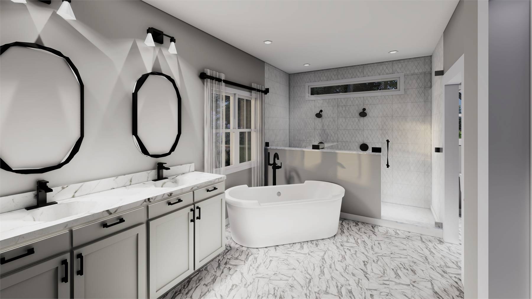 If you need a great modern farmhouse for your growing family, give House Plan 11403 a try. This two-story design offers four bedrooms and three-and-a-half bathrooms in a split-bedroom arrangement. On the main floor, the common areas include the living space, kitchen, and dining space in an L-shaped layout that lets you choose between a two-sided fireplace between the living and kitchen for formal definition and a fireplace on the wall to open up the room. The primary suite is privately tucked in back and boasts a lovely five-piece bath. The office, powder room, and laundry room round out this floor. Upstairs, there's a loft as well as three bedrooms and two bathrooms. One of the bedrooms is a private suite while the other two share a bathroom--one accesses it from the bedroom while the other uses the door in the hallway. Need parking? You'll find it in the two-car garage attached to the side!