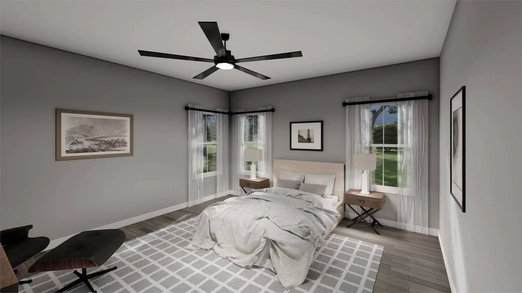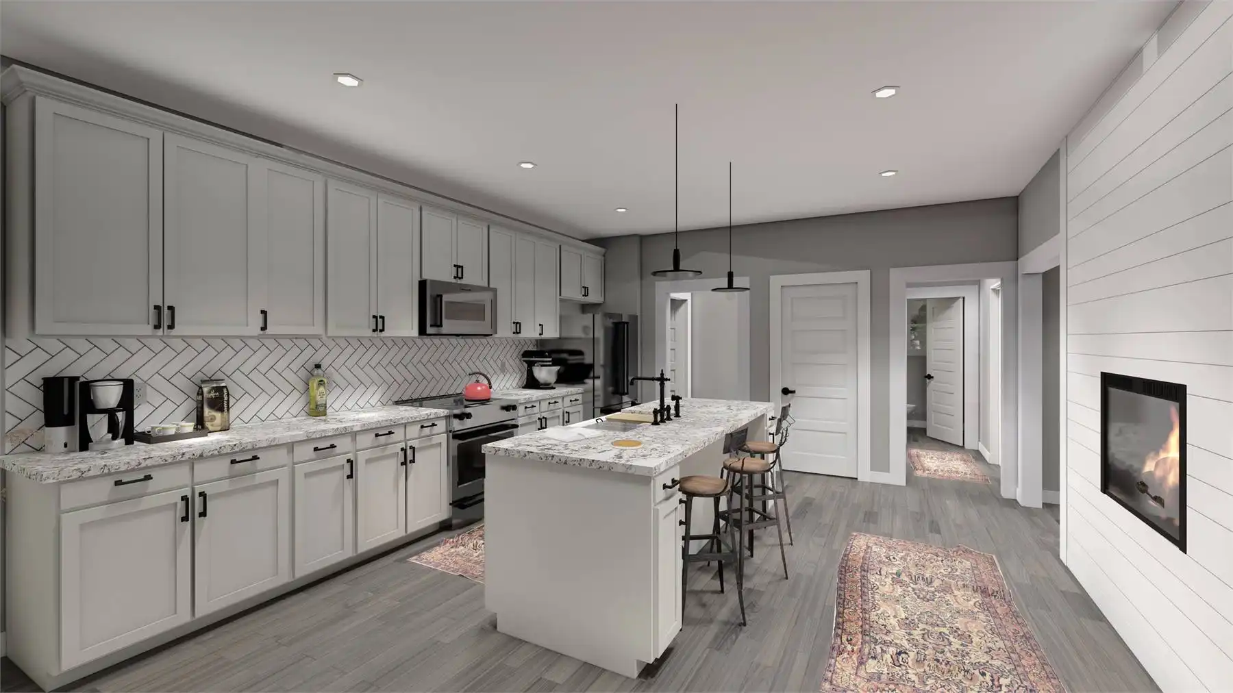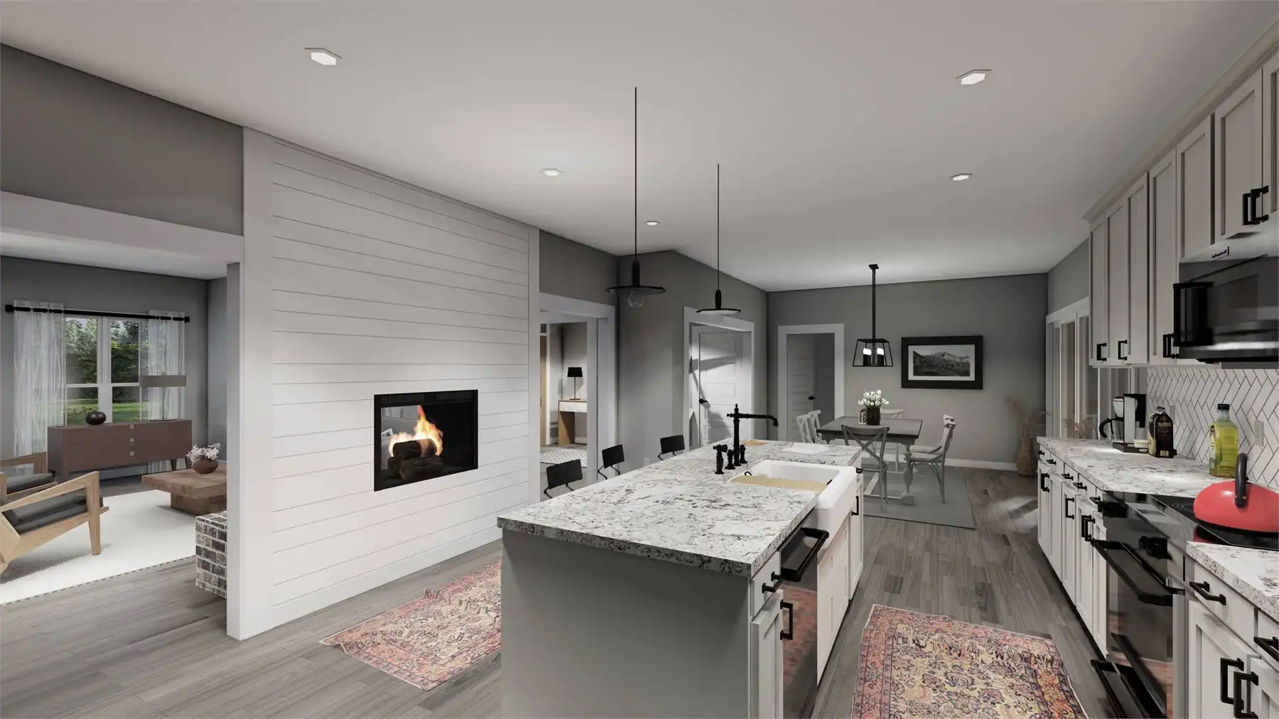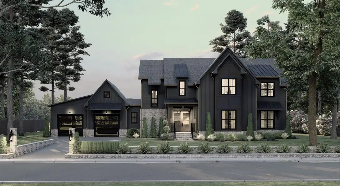 If you need a great modern farmhouse for your growing family, give House Plan 11403 a try. This two-story design offers four bedrooms and three-and-a-half bathrooms in a split-bedroom arrangement. On the main floor, the common areas include the living space, kitchen, and dining space in an L-shaped layout that lets you choose between a two-sided fireplace between the living and kitchen for formal definition and a fireplace on the wall to open up the room. The primary suite is privately tucked in back and boasts a lovely five-piece bath. The office, powder room, and laundry room round out this floor. Upstairs, there's a loft as well as three bedrooms and two bathrooms. One of the bedrooms is a private suite while the other two share a bathroom--one accesses it from the bedroom while the other uses the door in the hallway. Need parking? You'll find it in the two-car garage attached to the side!