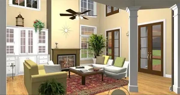 This two-story beauty features an open airy Great Room and Dining Area, highlighted by a gas fireplace, double French doors and columns and built-in custom cabinets.