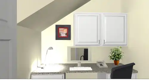 A Home Office is tucked under the stairs, perfect for a computer or hobby area.
