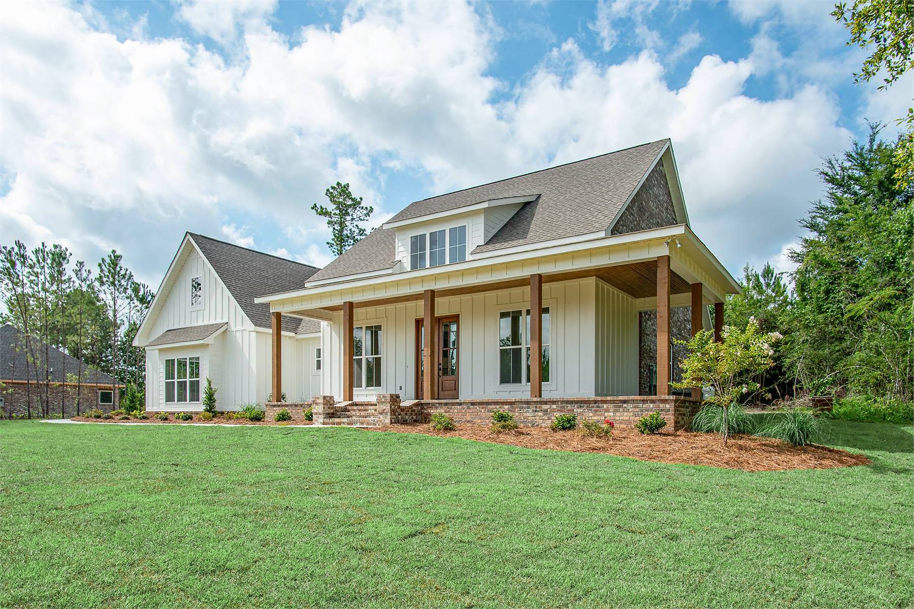 This beautiful 2,394 square foot design offers 3 bedrooms, 3.5 baths, and timeless farmhouse charm with modern conveniences. The open living spaces include a grand great room with beams, flowing naturally into the dining and kitchen areas. A well-appointed kitchen with oversized island, walk-in pantry, and seamless serving access makes family meals and entertaining effortless. The private primary suite offers a spa-like bath with an oversized shower and a large closet. Guest bedrooms each enjoy walk-in closets and private baths, creating comfort and privacy for family or visitors. A large laundry, extra half bath, and dedicated office ensure functionality and convenience throughout the home. The bonus room provides added space for hobbies, guests, or recreation. With welcoming porches and outdoor living areas, this home is ideal for gathering and making lasting memories.