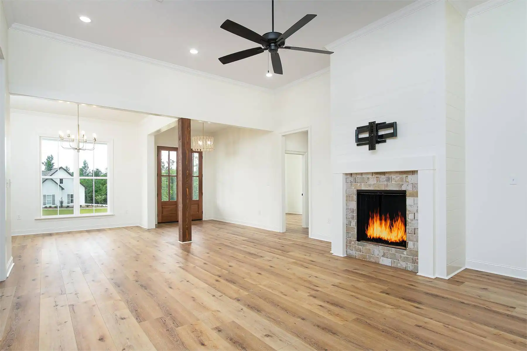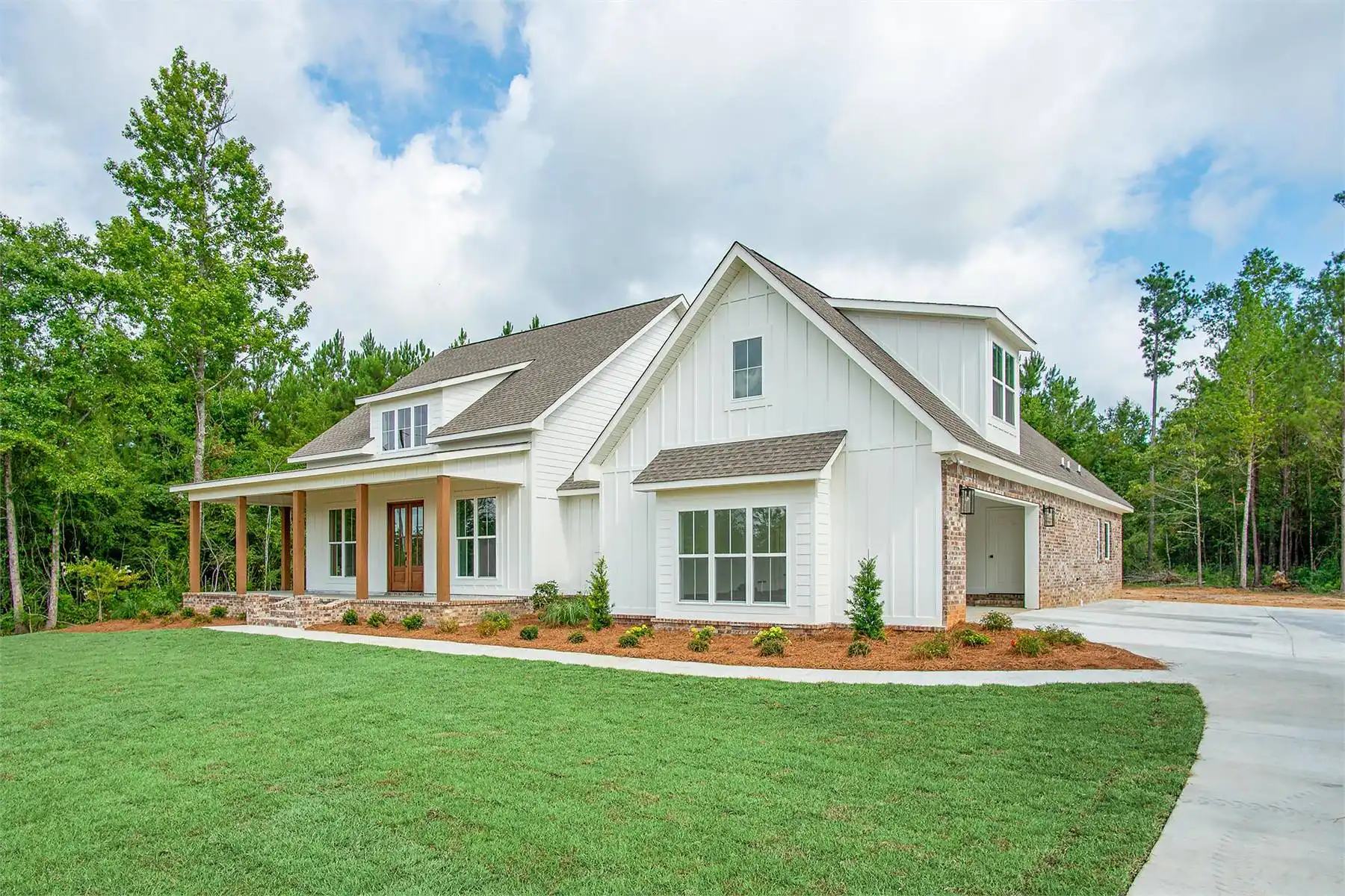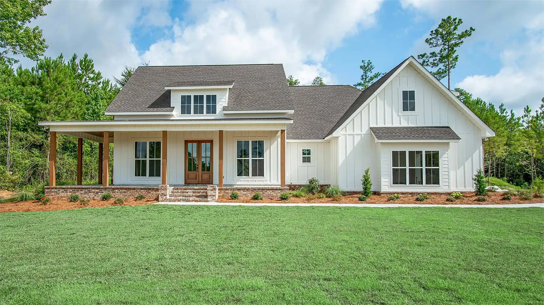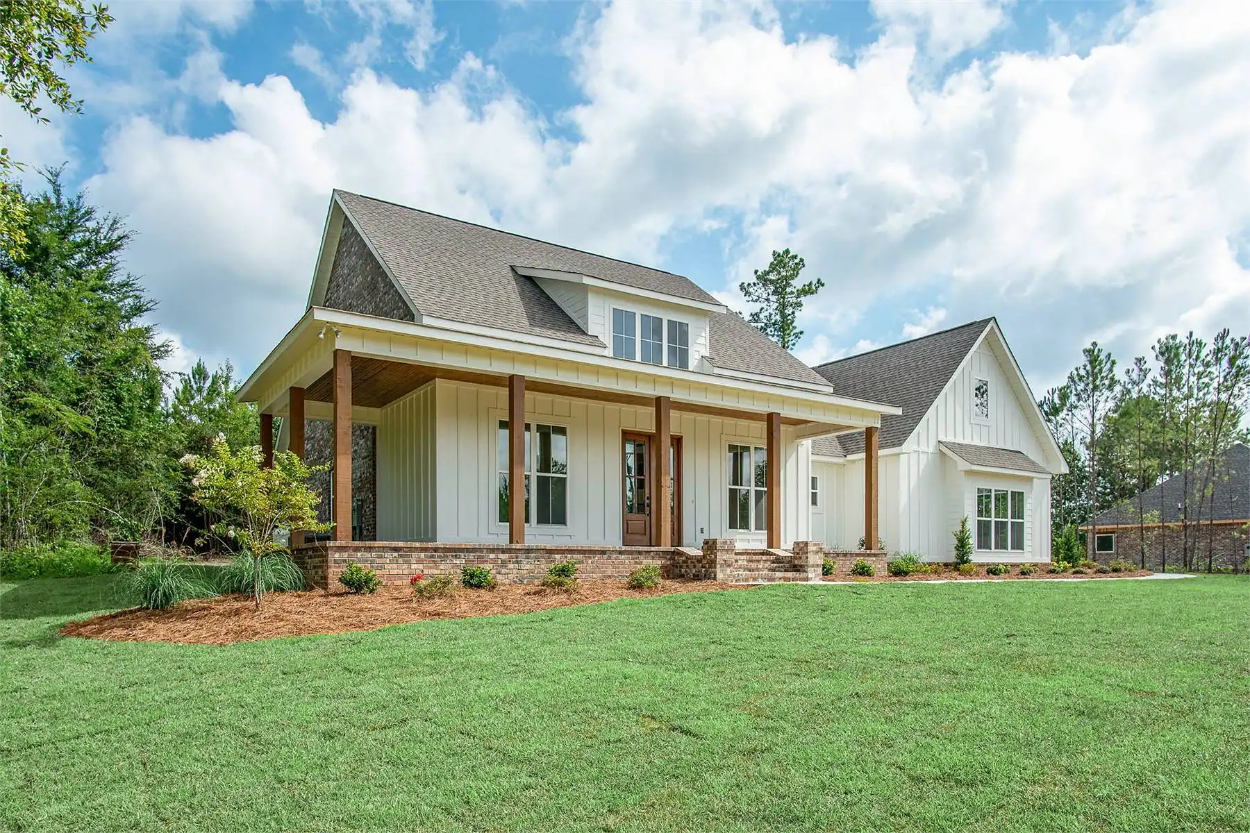 This beautiful 2,394 square foot design offers 3 bedrooms, 3.5 baths, and timeless farmhouse charm with modern conveniences. The open living spaces include a grand great room with beams, flowing naturally into the dining and kitchen areas. A well-appointed kitchen with oversized island, walk-in pantry, and seamless serving access makes family meals and entertaining effortless. The private primary suite offers a spa-like bath with an oversized shower and a large closet. Guest bedrooms each enjoy walk-in closets and private baths, creating comfort and privacy for family or visitors. A large laundry, extra half bath, and dedicated office ensure functionality and convenience throughout the home. The bonus room provides added space for hobbies, guests, or recreation. With welcoming porches and outdoor living areas, this home is ideal for gathering and making lasting memories.