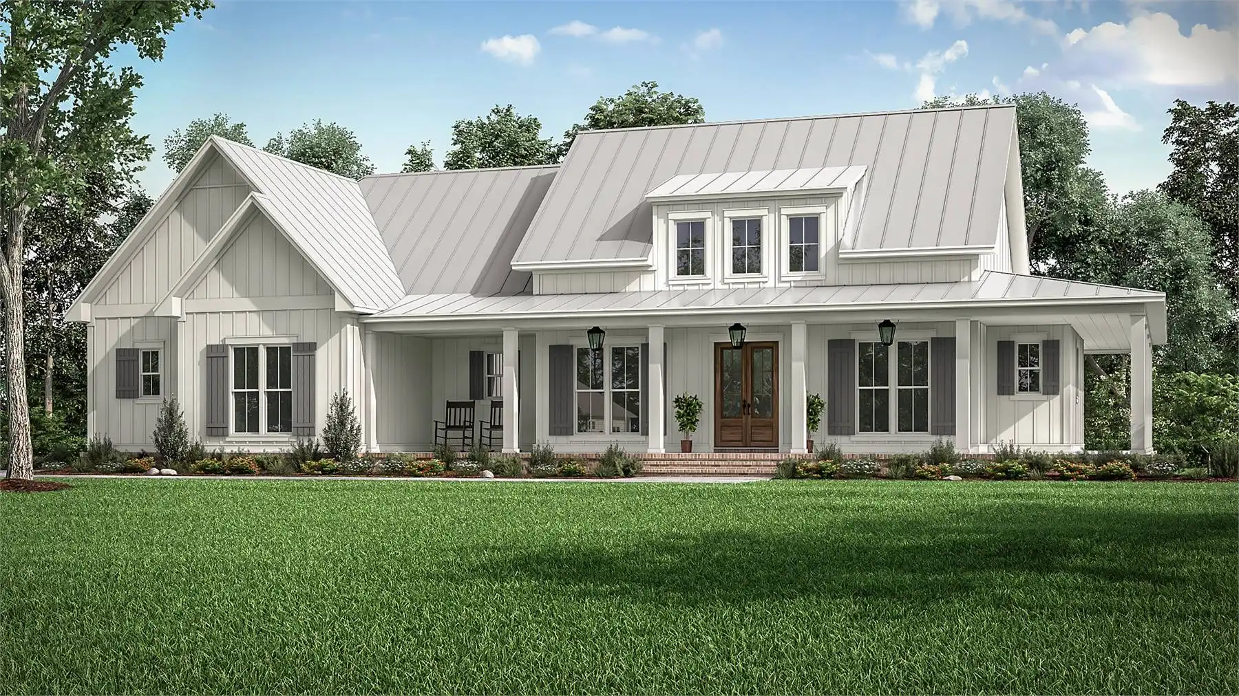 House Plan 11418 is a beautiful 2,395-square-foot design that blends farmhouse, country, and traditional influences for a warm and inviting feel. The great room boasts open sightlines and connects seamlessly to the kitchen and dining areas for effortless entertaining. A spacious kitchen with a walk-in pantry and a large island is at the heart of the home with the bedrooms split on opposite sides for privacy. The kids will enjoy two bedrooms with a Jack-and-Jill bath and a study nook nearby to provide a perfect workspace. The primary suite is a true retreat with a spa-like bath and an oversized closet. A versatile bonus room above the garage expands your living options with room for hobbies, guests, or recreation. A classic wraparound porch makes it easy to enjoy outdoor living year-round. This welcoming home blends style and function in a way that feels both practical and inspiring.
