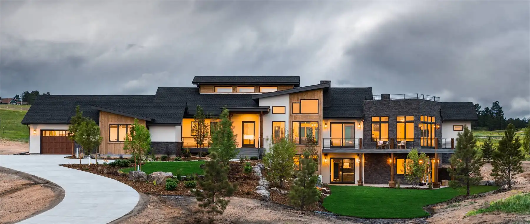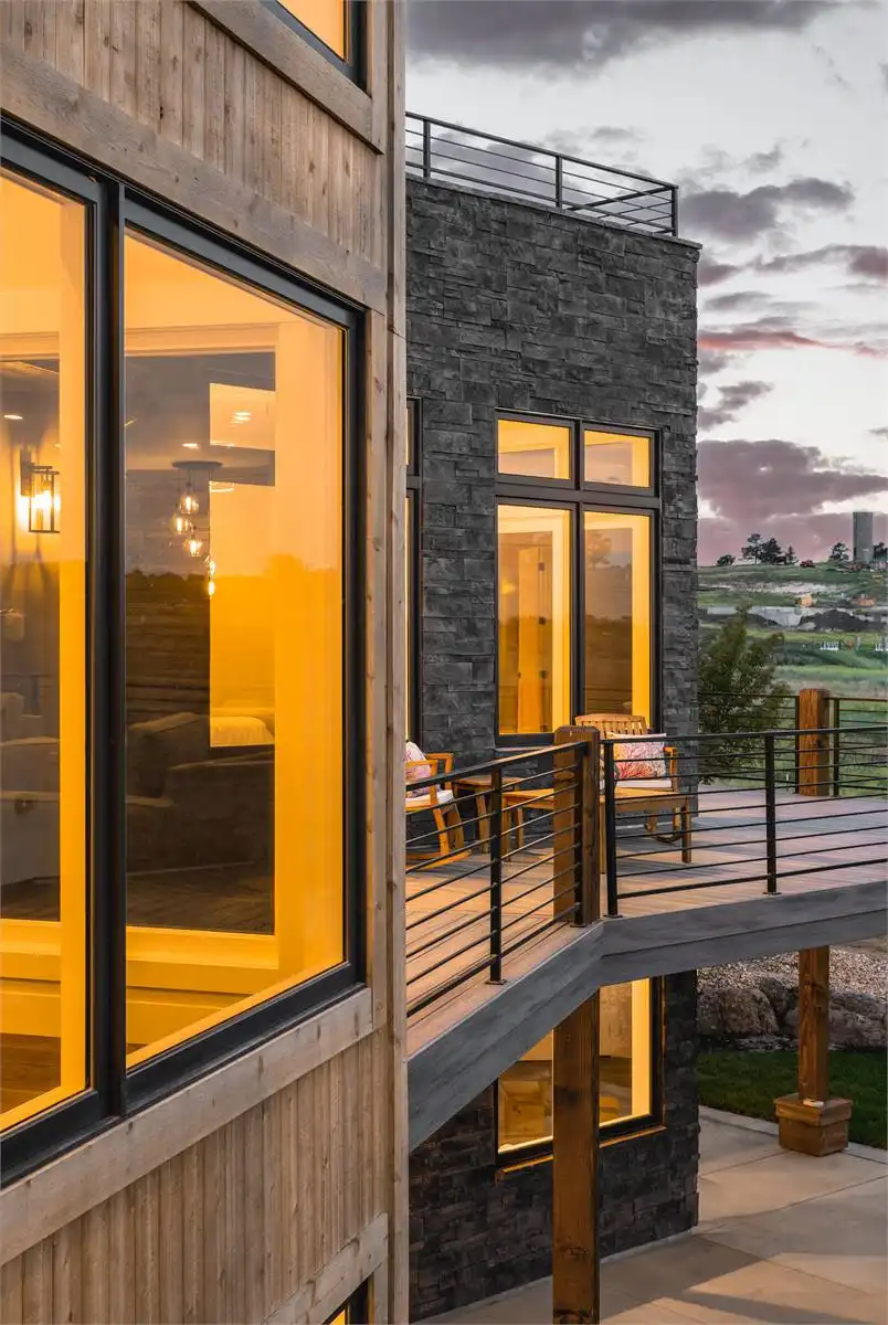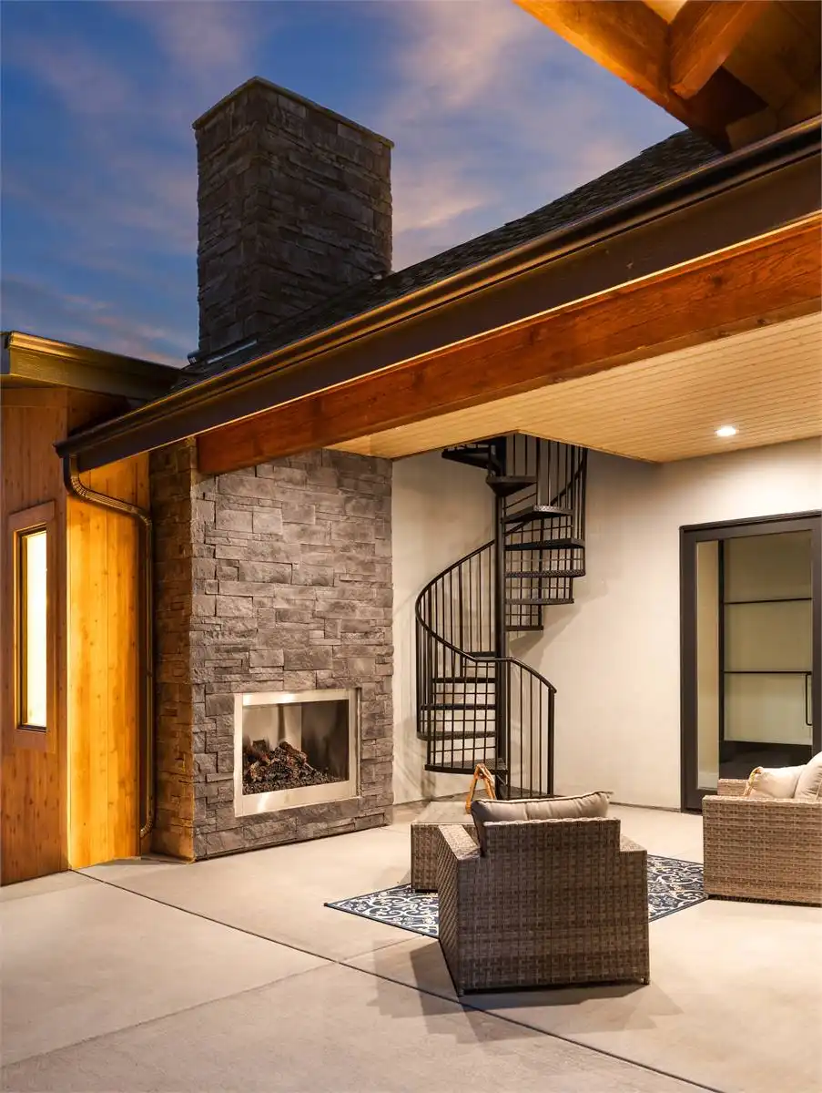 This charming modern home offers 2,871 square feet of thoughtfully designed living space, with flexibility for two to four bedrooms. The exterior pairs natural materials and bold rooflines, creating a timeless mountain retreat feel. Inside, the open-concept design flows seamlessly between the kitchen, dining, and living areas, making it ideal for entertaining. The gourmet kitchen features a large prep island and nearby pantry, while the dining space opens to an expansive patio with an outdoor fireplace. The angled primary suite includes a wrap-around deck, spa bath, and walk-in closet for a true private escape. An optional walk-out lower level expands the home with a recreation room, wet bar, home gym, sauna, and additional bedrooms. Blending rustic warmth with contemporary style, this design offers the perfect balance of function and beauty.