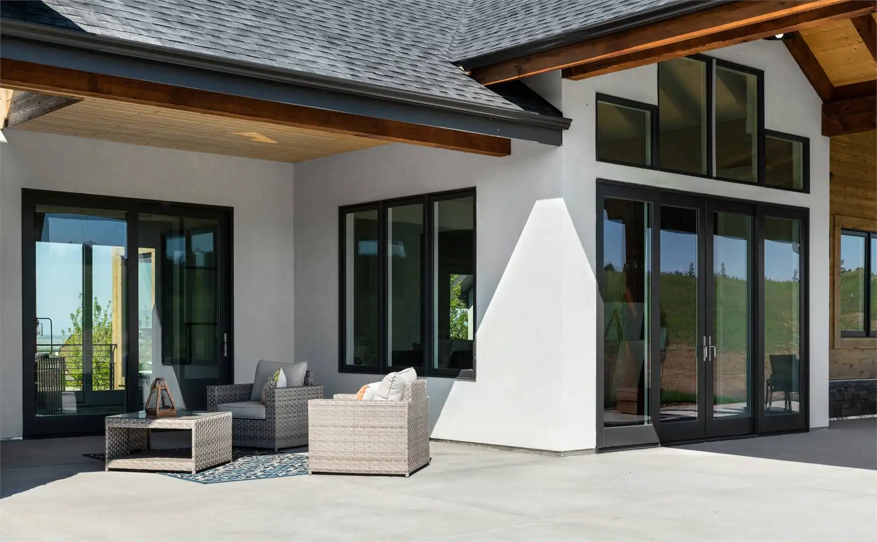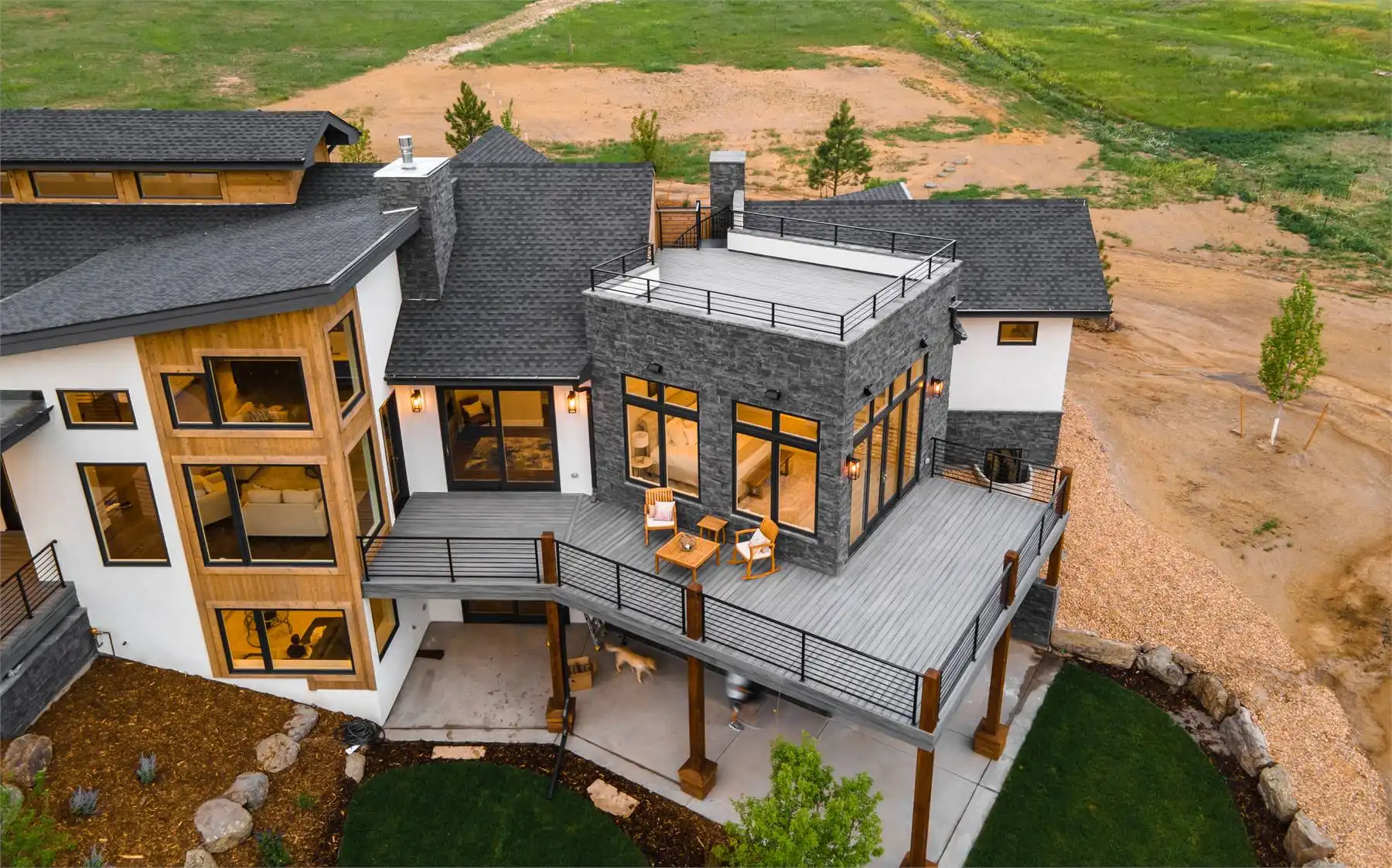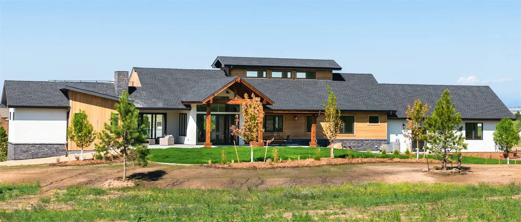 This charming modern home offers 2,871 square feet of thoughtfully designed living space, with flexibility for two to four bedrooms. The exterior pairs natural materials and bold rooflines, creating a timeless mountain retreat feel. Inside, the open-concept design flows seamlessly between the kitchen, dining, and living areas, making it ideal for entertaining. The gourmet kitchen features a large prep island and nearby pantry, while the dining space opens to an expansive patio with an outdoor fireplace. The angled primary suite includes a wrap-around deck, spa bath, and walk-in closet for a true private escape. An optional walk-out lower level expands the home with a recreation room, wet bar, home gym, sauna, and additional bedrooms. Blending rustic warmth with contemporary style, this design offers the perfect balance of function and beauty.