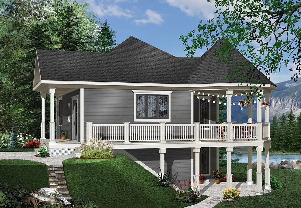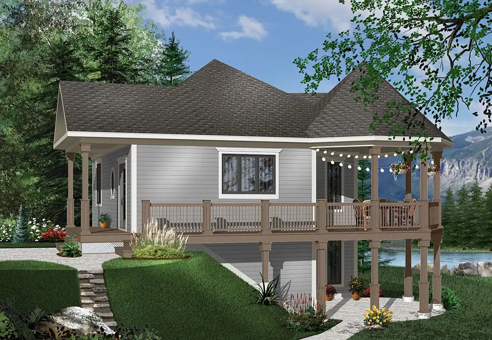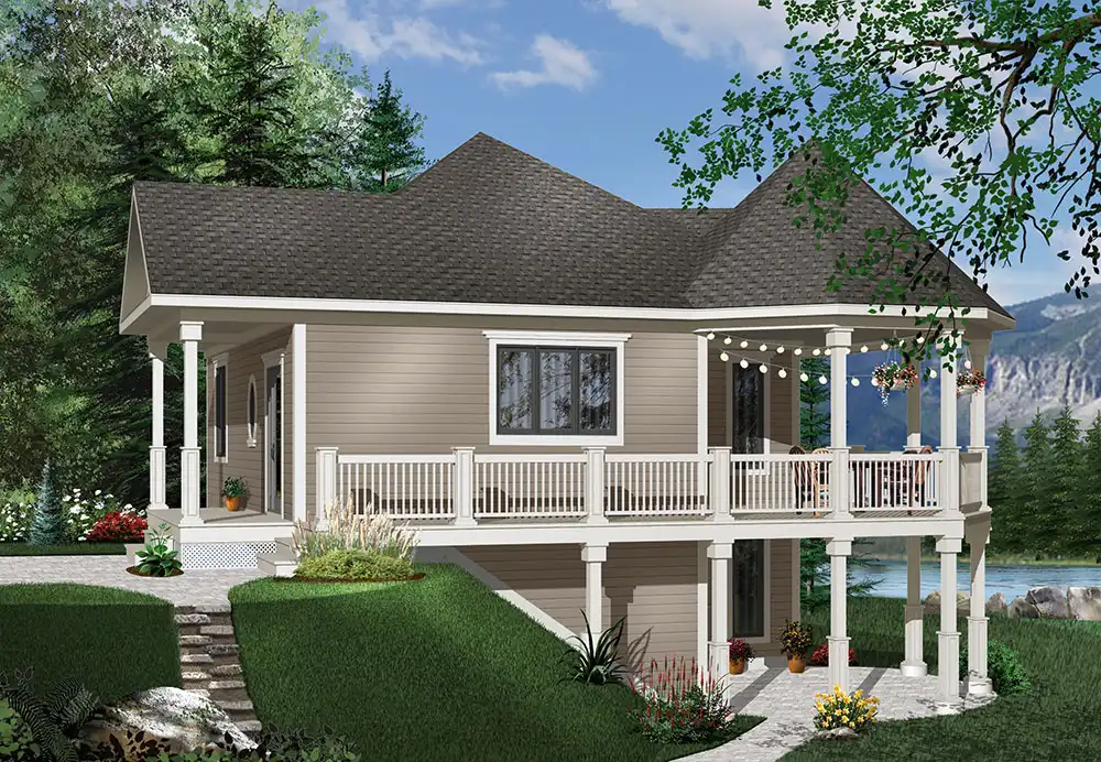 This may be the cutest small lake home you've ever seen! A wraparound porch gives you plenty of outdoor conversation space. Inside, the main floor hosts one ample bedroom with luxurious bath. The open great room is easily serviced by the island kitchen. An optional walk-out basement allows you to expand the square footage.