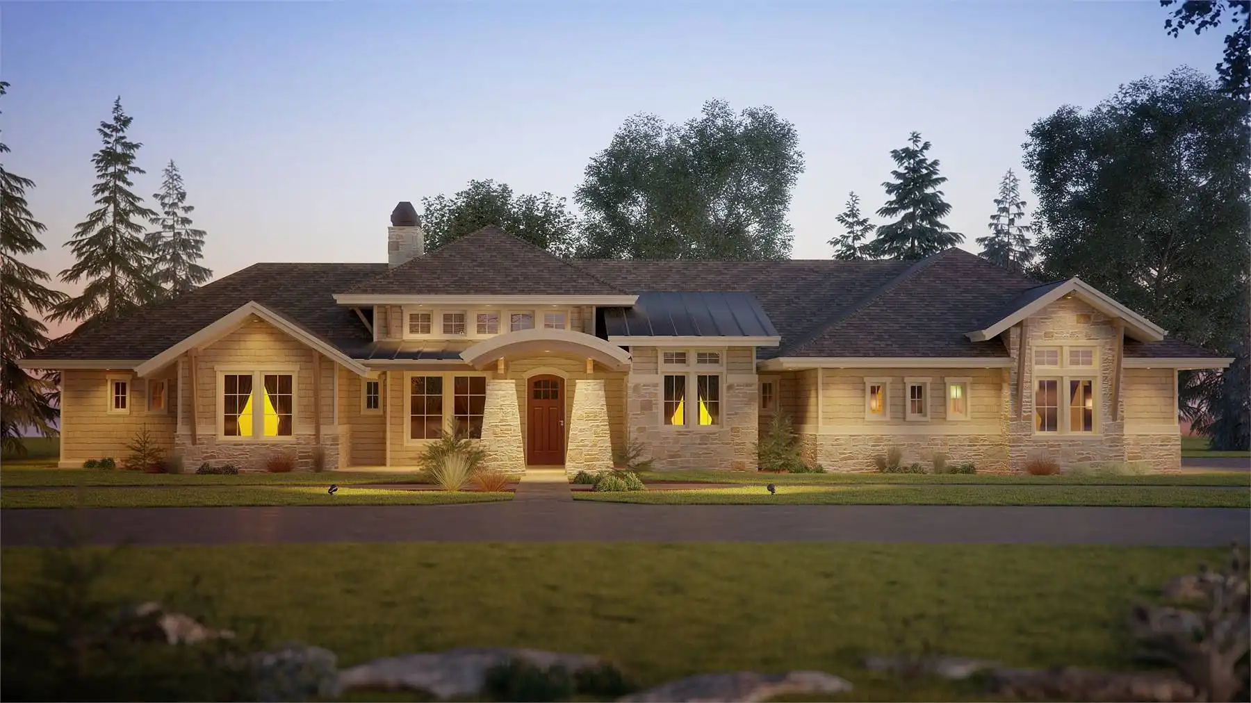 Offering 2,725 square feet of flexible living space, this plan adapts easily to your needs with options for one to four bedrooms. The heart of the home is the open floor plan, where a spacious kitchen and great room flow seamlessly together. A Jack and Jill bath provides a smart solution for shared bedrooms, while the main-level primary suite creates a quiet retreat. Dedicated spaces such as the media room, exercise room, and study make it easy to balance work and play. The mudroom and laundry room add convenience to busy family life. Charming front and rear porches invite outdoor relaxation in every season. Warm, inviting, and highly functional, this home is designed to grow with you.