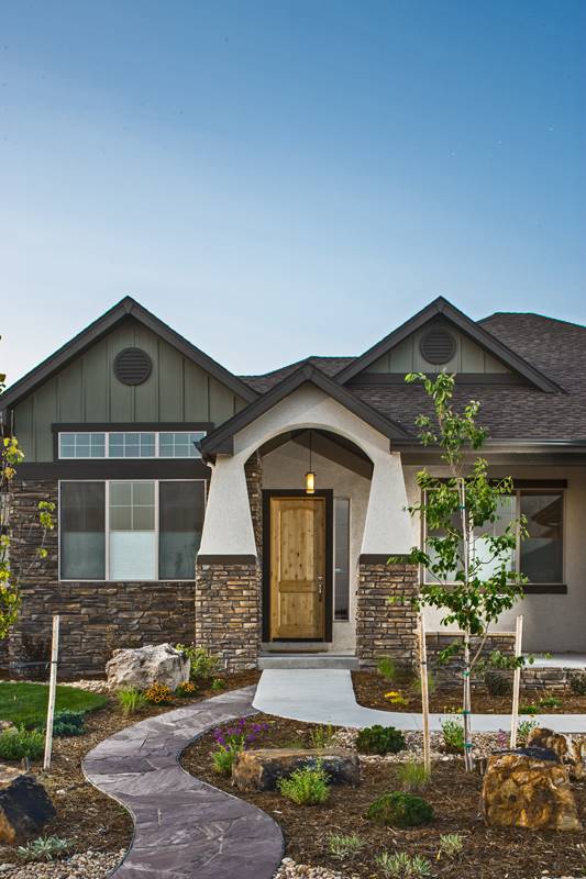 Blending charm with modern comfort, this 2,350 square foot Craftsman Ranch is perfect for both everyday living and entertaining. The inviting facade features stone accents, stucco details, and a gabled porch supported by classic tapered columns. A front study adds flexibility for a home office, while the open-concept great room and kitchen create the heart of the home. The primary suite includes patio access, a deluxe bathroom with private commode, and a roomy walk-in closet. Secondary bedrooms are grouped together, offering convenience for children or guests. Functional touches include a mudroom with storage, a laundry room with utility sink, and direct garage entry. The optional lower level adds 1,500 square feet with a spacious living area, wet bar, and two bedrooms. With its thoughtful layout and Craftsman styling, this home offers comfort and versatility for years to come.