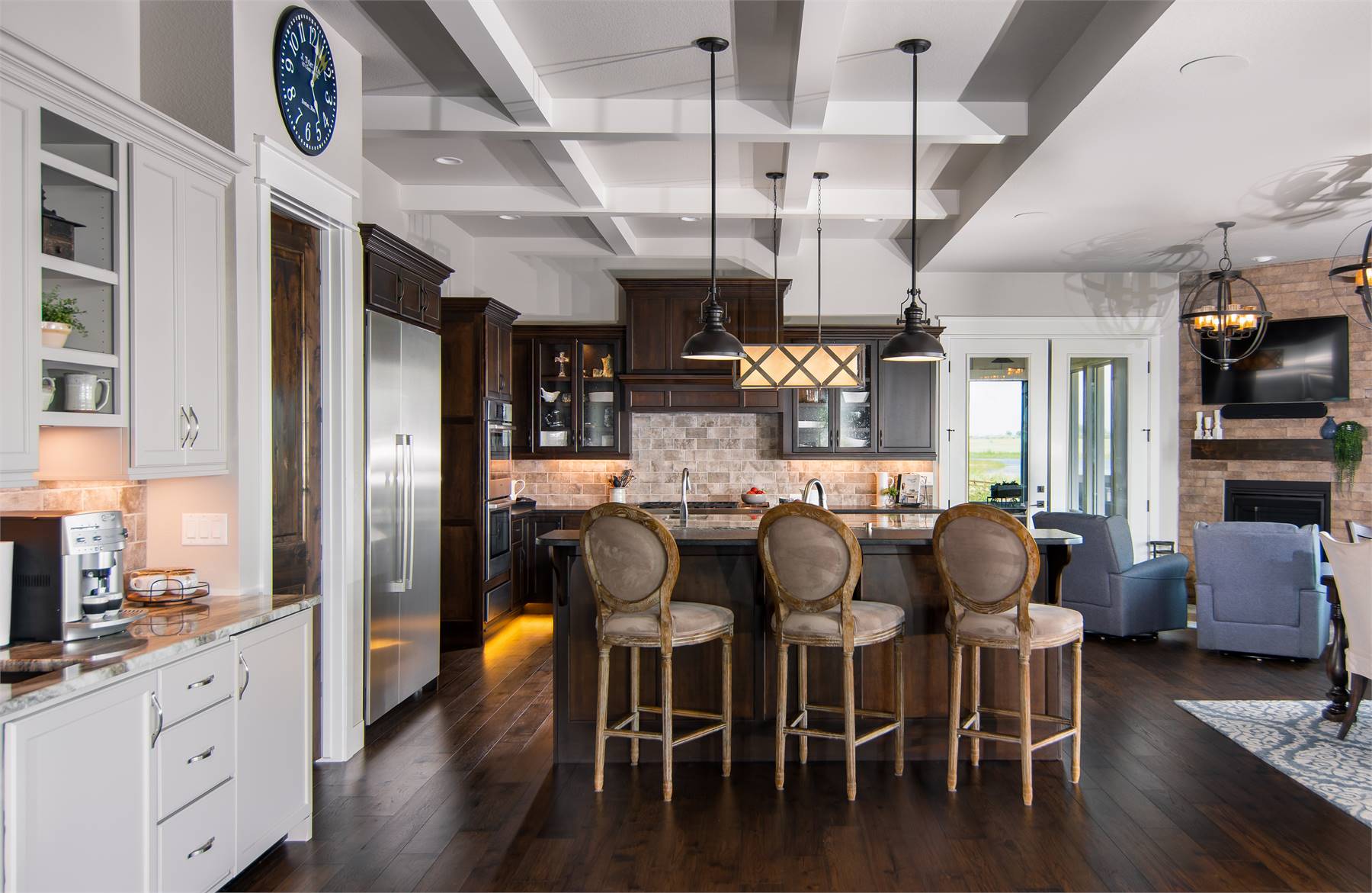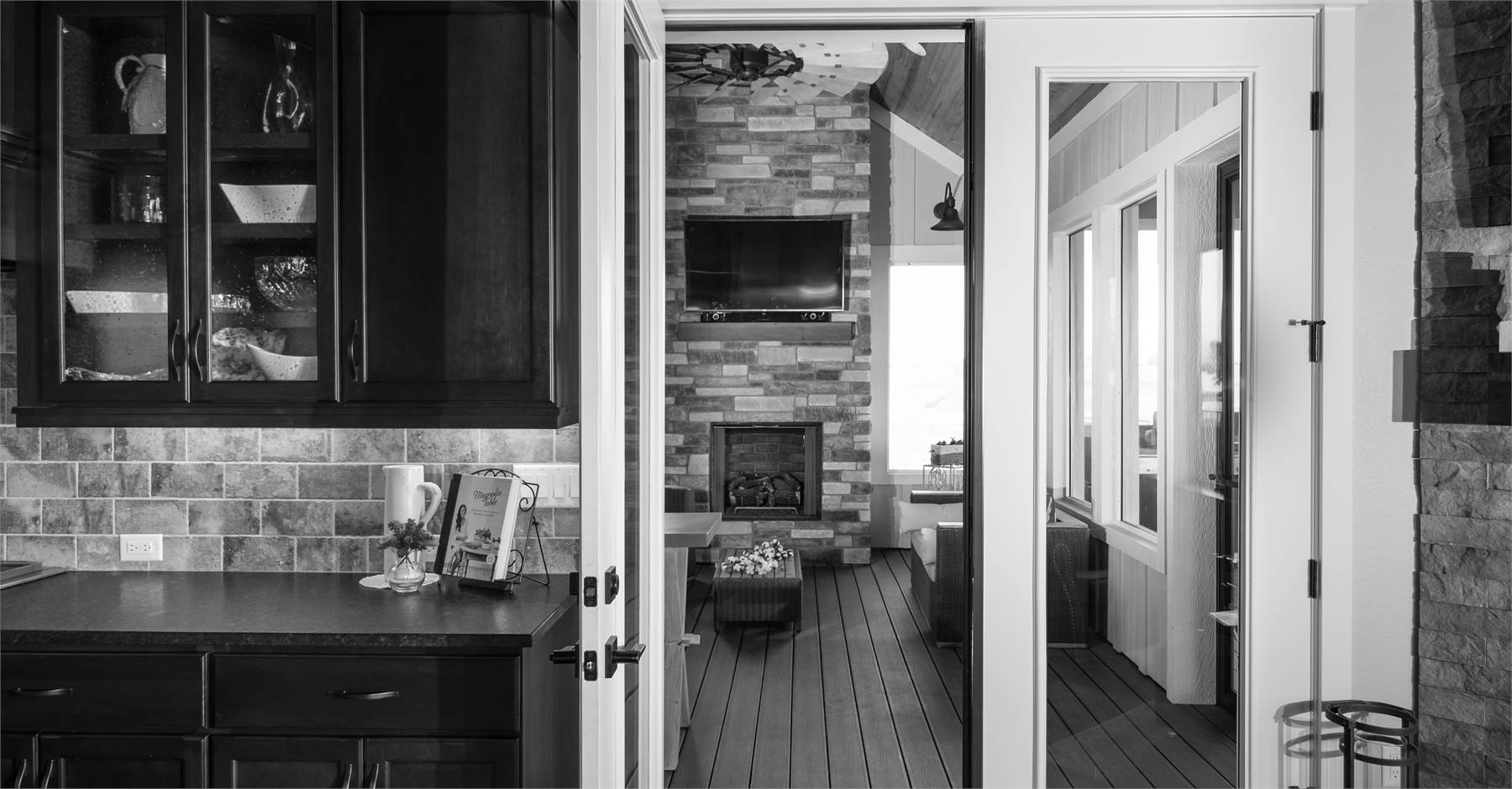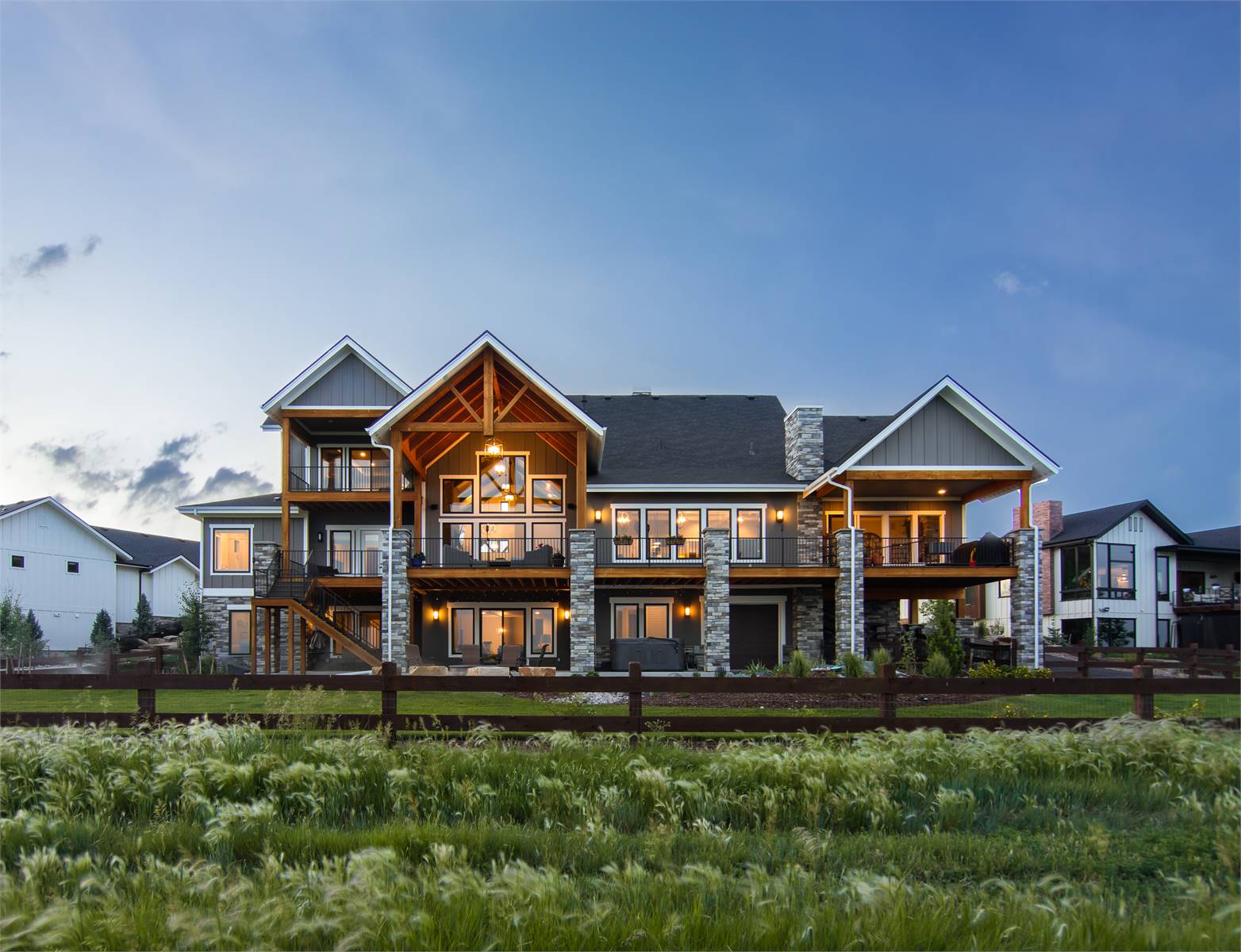 This charming 2-story mountain Craftsman plan offers 3,456 square feet of inviting living space with 2–5 bedrooms and 3.5–5.5 baths. From the covered porch to the screened outdoor dining area, every detail encourages family gatherings and year-round entertaining. The heart of the home is the open family room with soaring ceilings and an oversized opening to the kitchen and dining area, where dual islands and a fireplace create both function and warmth. The primary suite on the main level provides comfort and luxury with its own fireplace, spa-style bath, and private deck access. Upstairs, a quiet office retreat includes a private bath and deck, offering flexibility for work or relaxation. The optional walkout lower level expands the living space with recreation areas, a wet bar, and two additional bedroom suites. A 4-car garage, mudroom, and ample storage keep the home practical as well as beautiful. With its blend of rustic charm and modern features, this home is ideal for family living and entertaining.