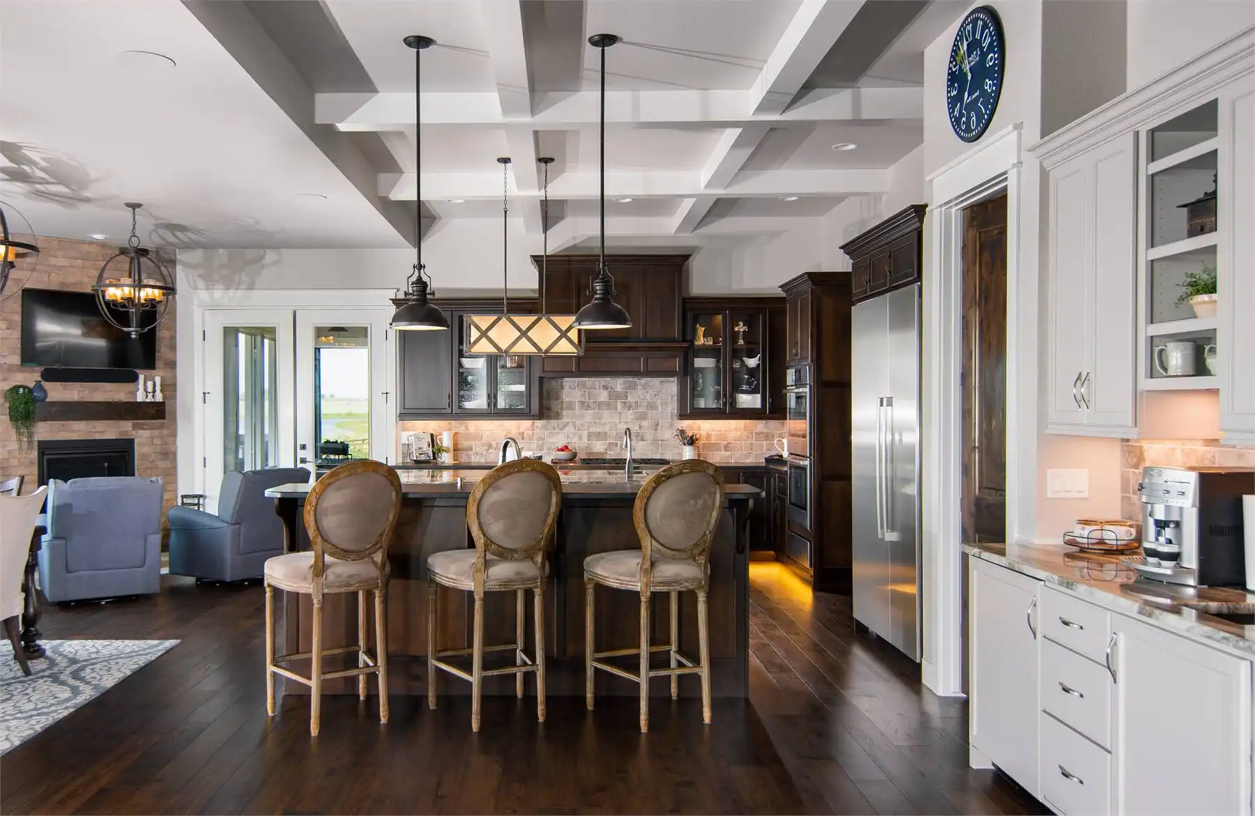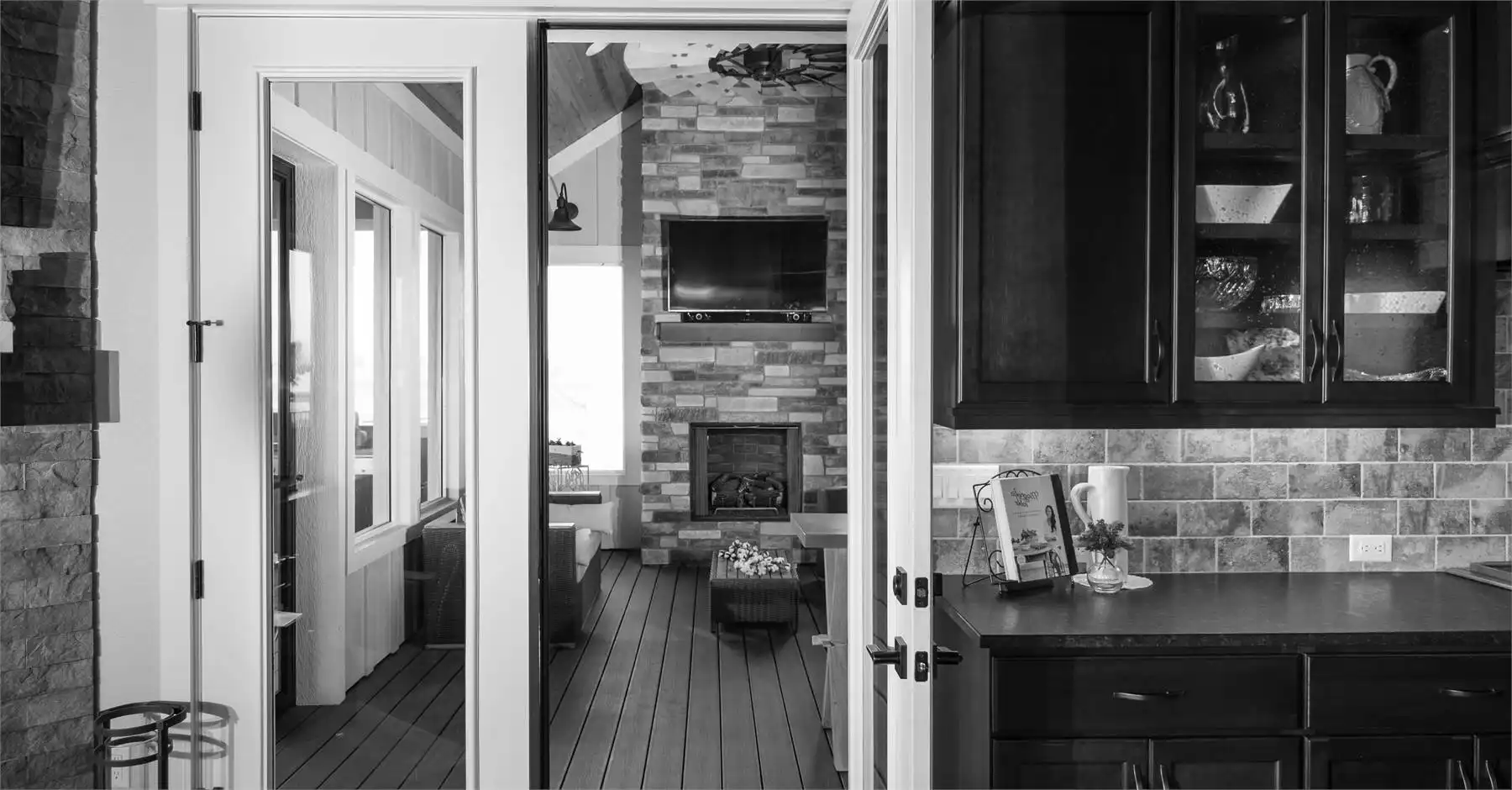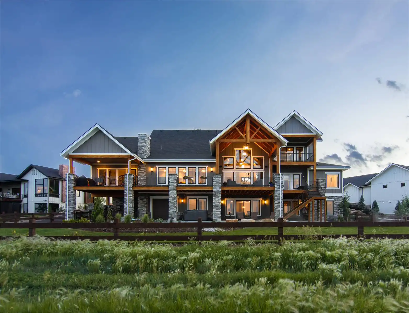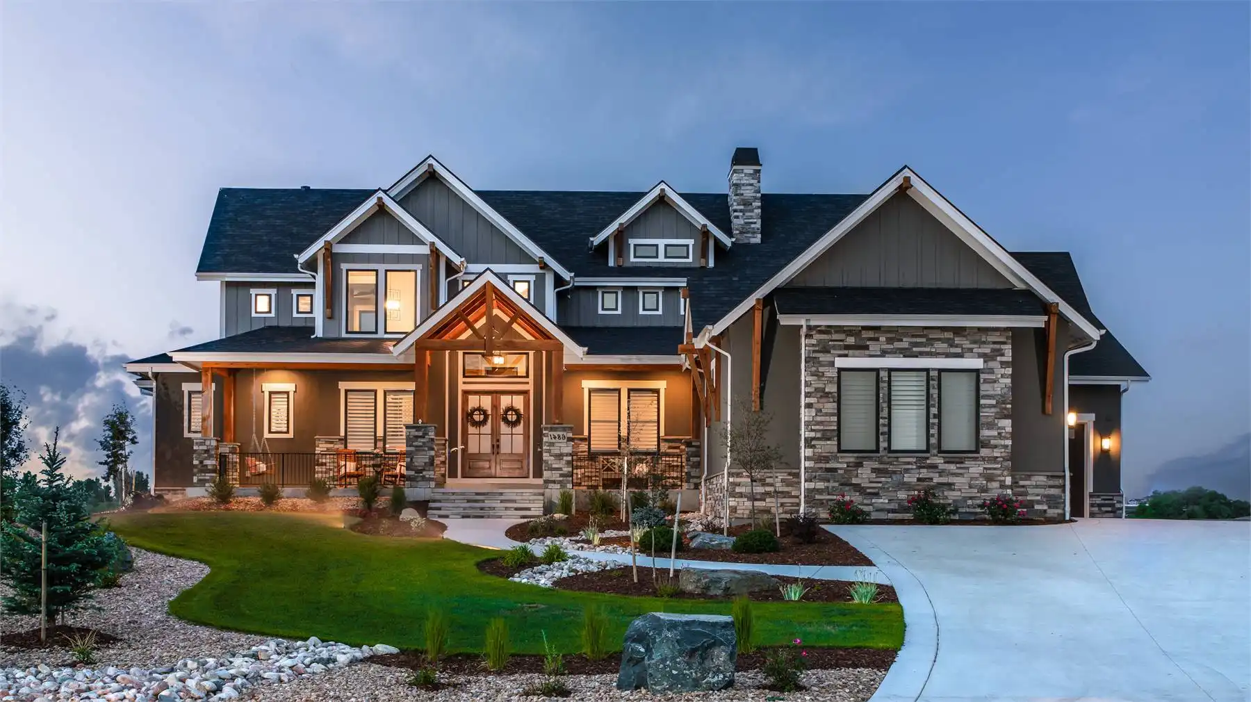 This charming 2-story mountain Craftsman plan offers 3,456 square feet of inviting living space with 2–5 bedrooms and 3.5–5.5 baths. From the covered porch to the screened outdoor dining area, every detail encourages family gatherings and year-round entertaining. The heart of the home is the open family room with soaring ceilings and an oversized opening to the kitchen and dining area, where dual islands and a fireplace create both function and warmth. The primary suite on the main level provides comfort and luxury with its own fireplace, spa-style bath, and private deck access. Upstairs, a quiet office retreat includes a private bath and deck, offering flexibility for work or relaxation. The optional walkout lower level expands the living space with recreation areas, a wet bar, and two additional bedroom suites. A 4-car garage, mudroom, and ample storage keep the home practical as well as beautiful. With its blend of rustic charm and modern features, this home is ideal for family living and entertaining.