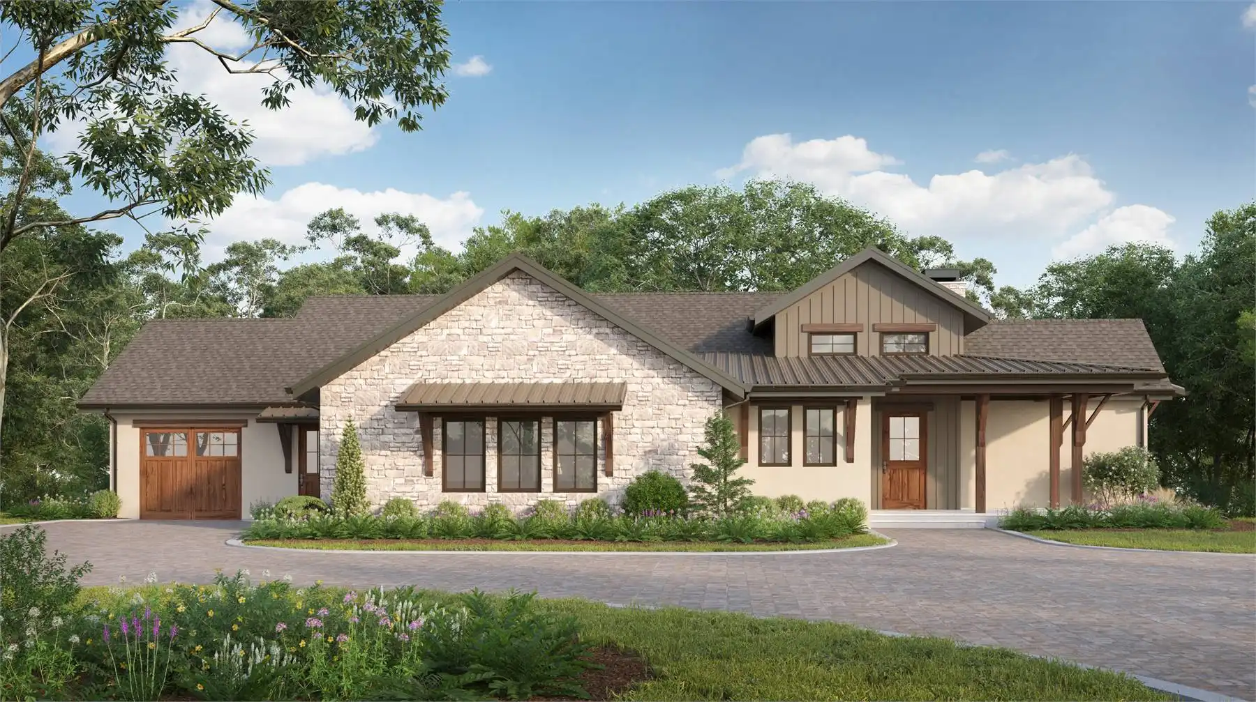 Offering 2,299 square feet, House Plan 11473 home combines modern efficiency with timeless ranch details. The open floor plan encourages connection between the voluminous great room, dining, and kitchen areas, while a fireplace adds cozy character. The kitchen boasts both an island and a convenient butler’s pantry. The primary suite is located on the main level and features dual walk-in closets and a private bath with double vanities. A mudroom, laundry on the first floor, and abundant storage enhance everyday living. If you choose the walkout basement, a recreation room provides space for fun and relaxation downstairs along with two more beds and baths. There are also unfinished areas offering future flexibility. Designed for comfort and versatility, this home welcomes family living and easy entertaining.