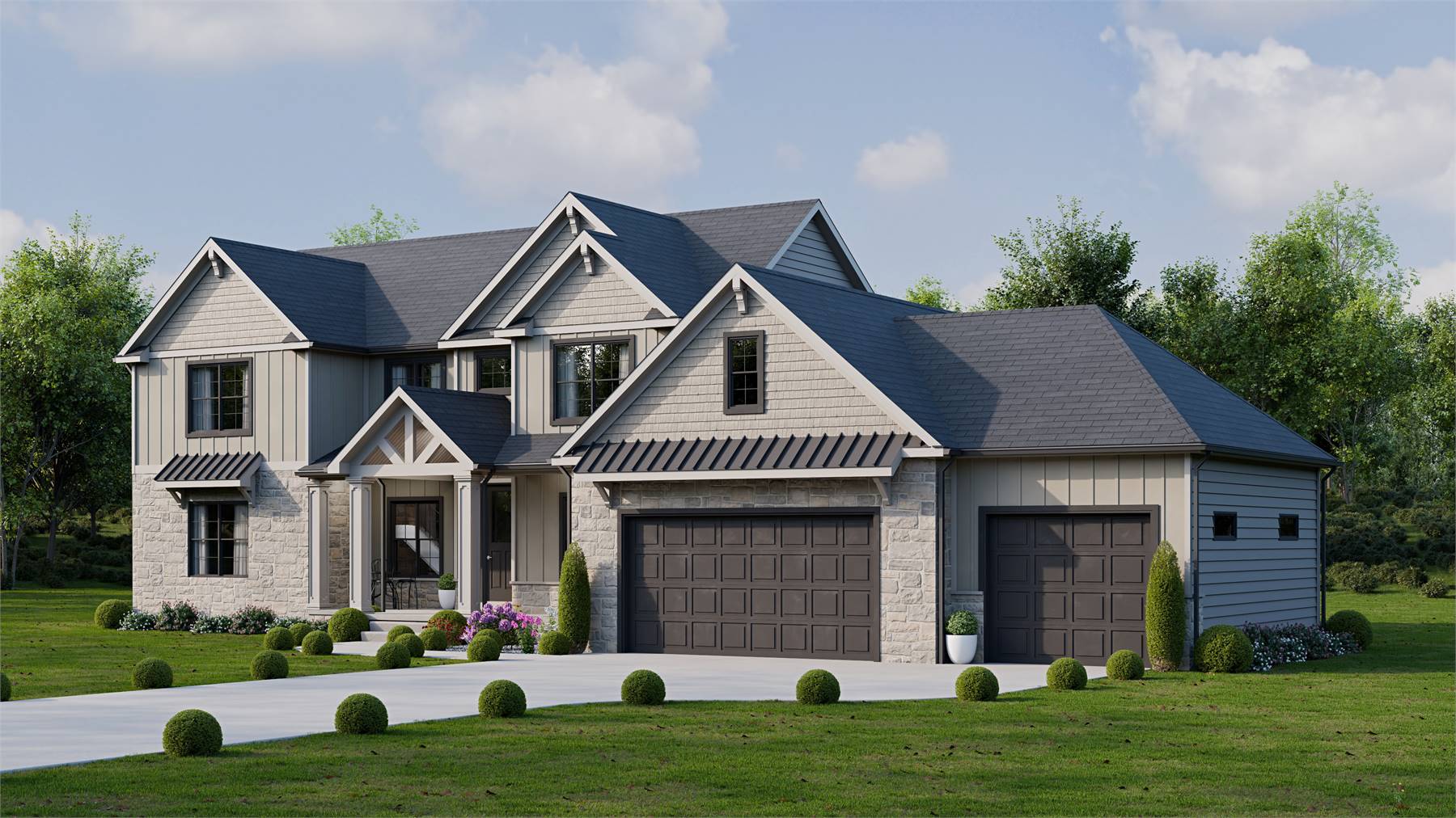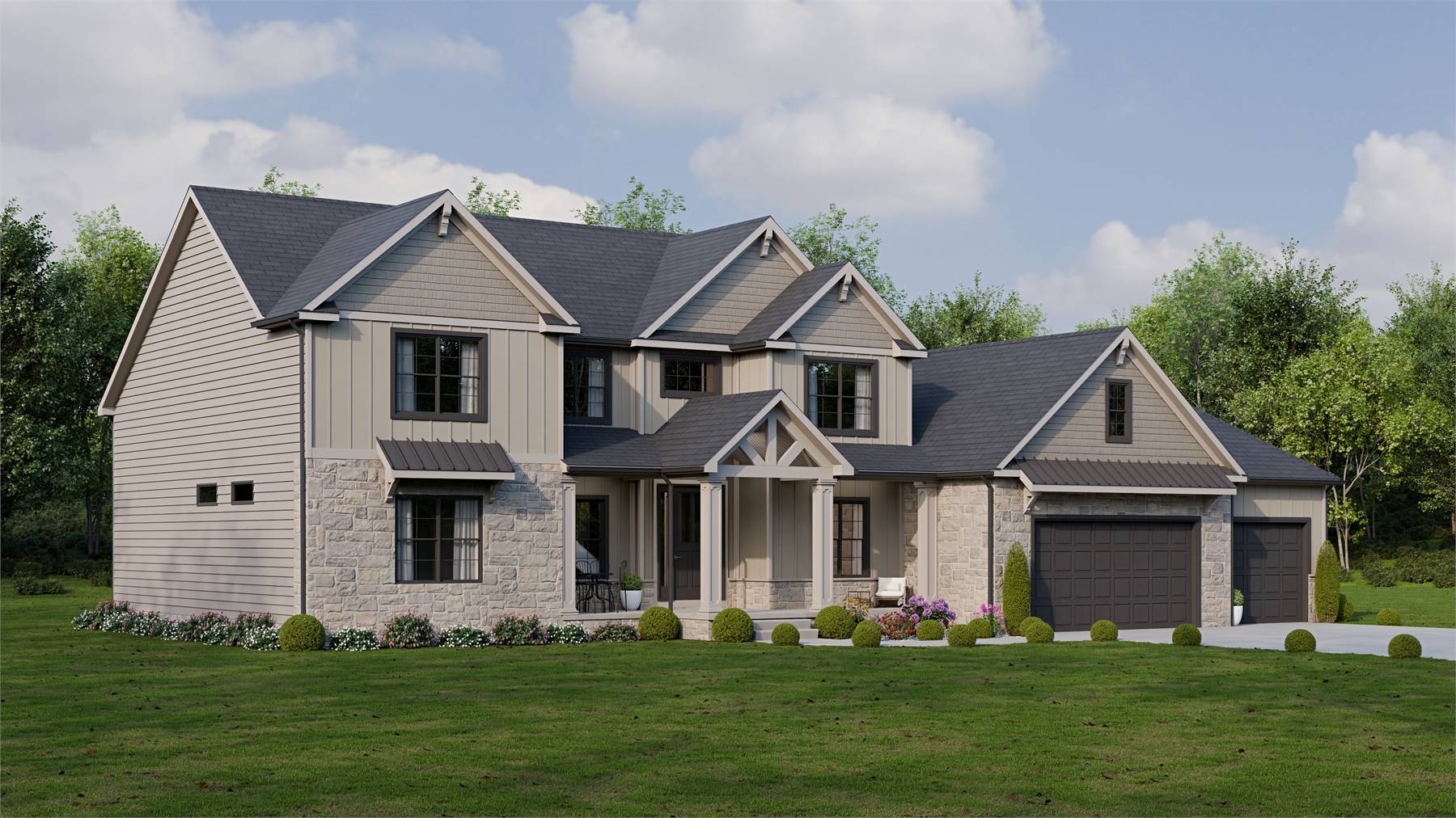 Offering 2,478 square feet, this thoughtfully designed plan provides charm, function, and flexibility for today’s families. The open layout connects the great room, dining area, and kitchen, creating a comfortable setting for both entertaining and daily routines. The kitchen shines with its central island, butler’s pantry, and easy flow to the rear covered porch for outdoor meals. The main-level primary suite includes a spa-like bath and walk-in closet, while two additional bedrooms and a loft upstairs provide plenty of space for family or guests. A welcoming front porch adds curb appeal, while the mudroom and workshop keep things organized. With influences of Colonial, Farmhouse, and Southern style, this plan blends classic details with modern convenience. This home makes everyday living both easy and inviting.