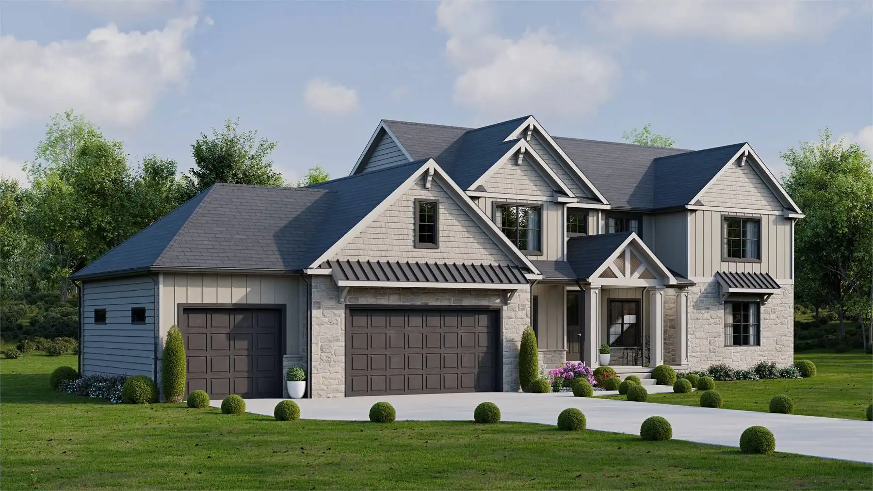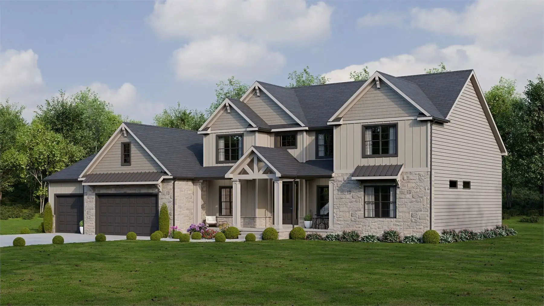 Offering 2,478 square feet, this thoughtfully designed plan provides charm, function, and flexibility for today’s families. The open layout connects the great room, dining area, and kitchen, creating a comfortable setting for both entertaining and daily routines. The kitchen shines with its central island, butler’s pantry, and easy flow to the rear covered porch for outdoor meals. The main-level primary suite includes a spa-like bath and walk-in closet, while two additional bedrooms and a loft upstairs provide plenty of space for family or guests. A welcoming front porch adds curb appeal, while the mudroom and workshop keep things organized. With influences of Colonial, Farmhouse, and Southern style, this plan blends classic details with modern convenience. This home makes everyday living both easy and inviting.