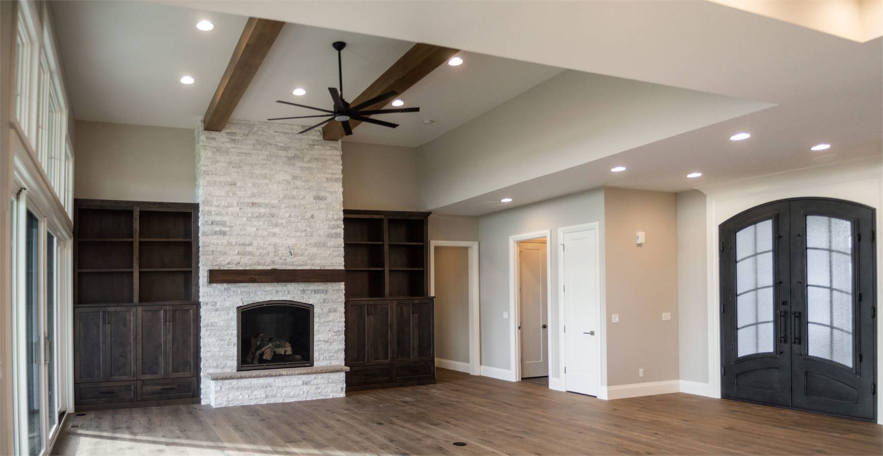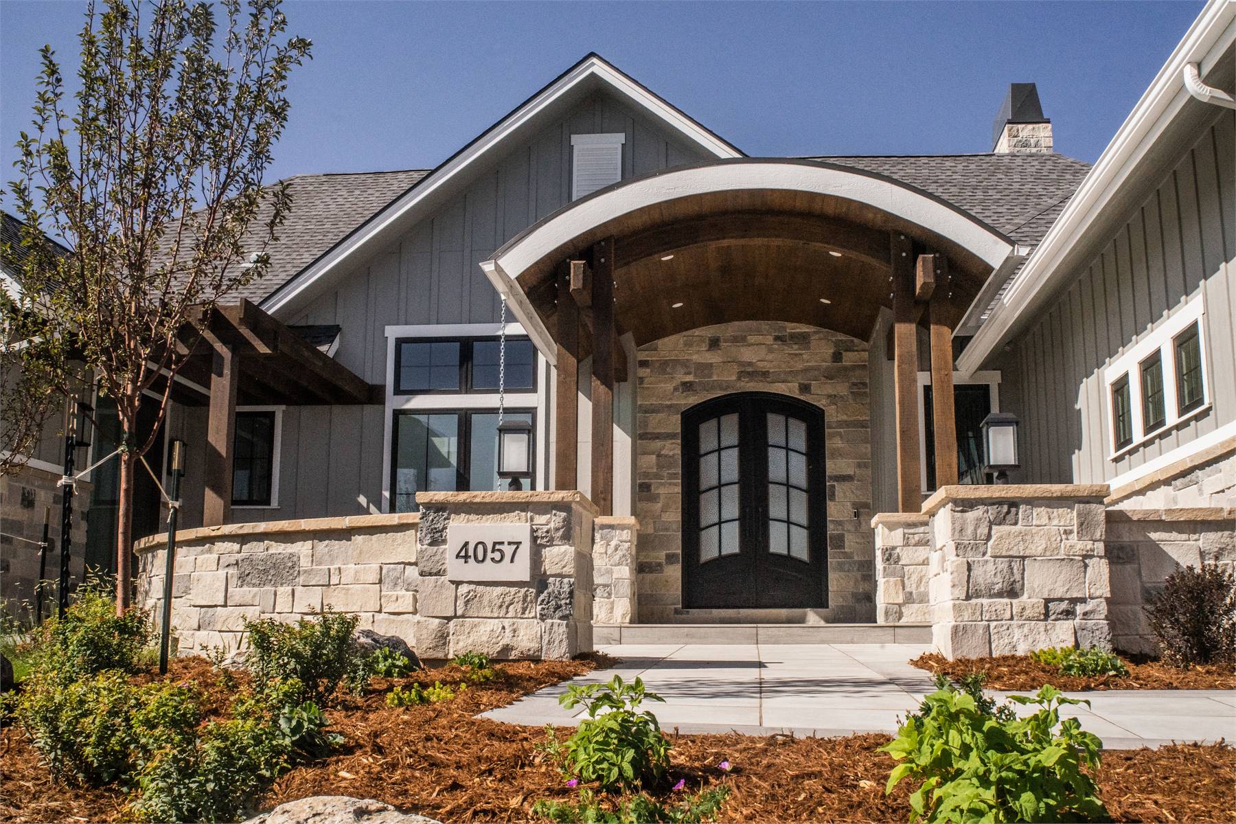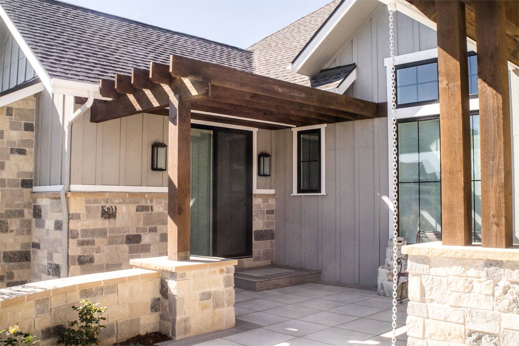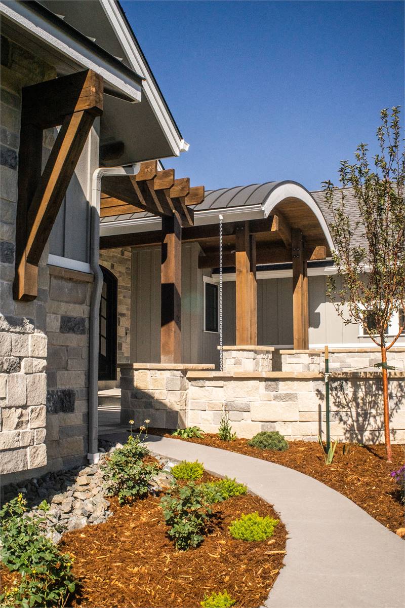This charming 3,082 square foot ranch home combines Craftsman character with modern features designed for today’s lifestyle. The open floor plan centers around a spacious great room, flowing seamlessly into the dining area and kitchen with island and butler’s pantry. A cozy fireplace and access to a covered rear porch create a welcoming atmosphere for gatherings. The main-floor primary suite includes a luxurious bath with double vanity, separate tub and shower, and generous walk-in closet. Two additional bedrooms share a split layout, providing privacy and comfort. Bonus spaces like the exercise room, rec room, and home office ensure plenty of room for both work and play. The outdoor kitchen and courtyard make entertaining a joy, while unfinished lower-level areas allow for future customization. This warm and inviting plan is perfect for families who value both comfort and flexibility.
