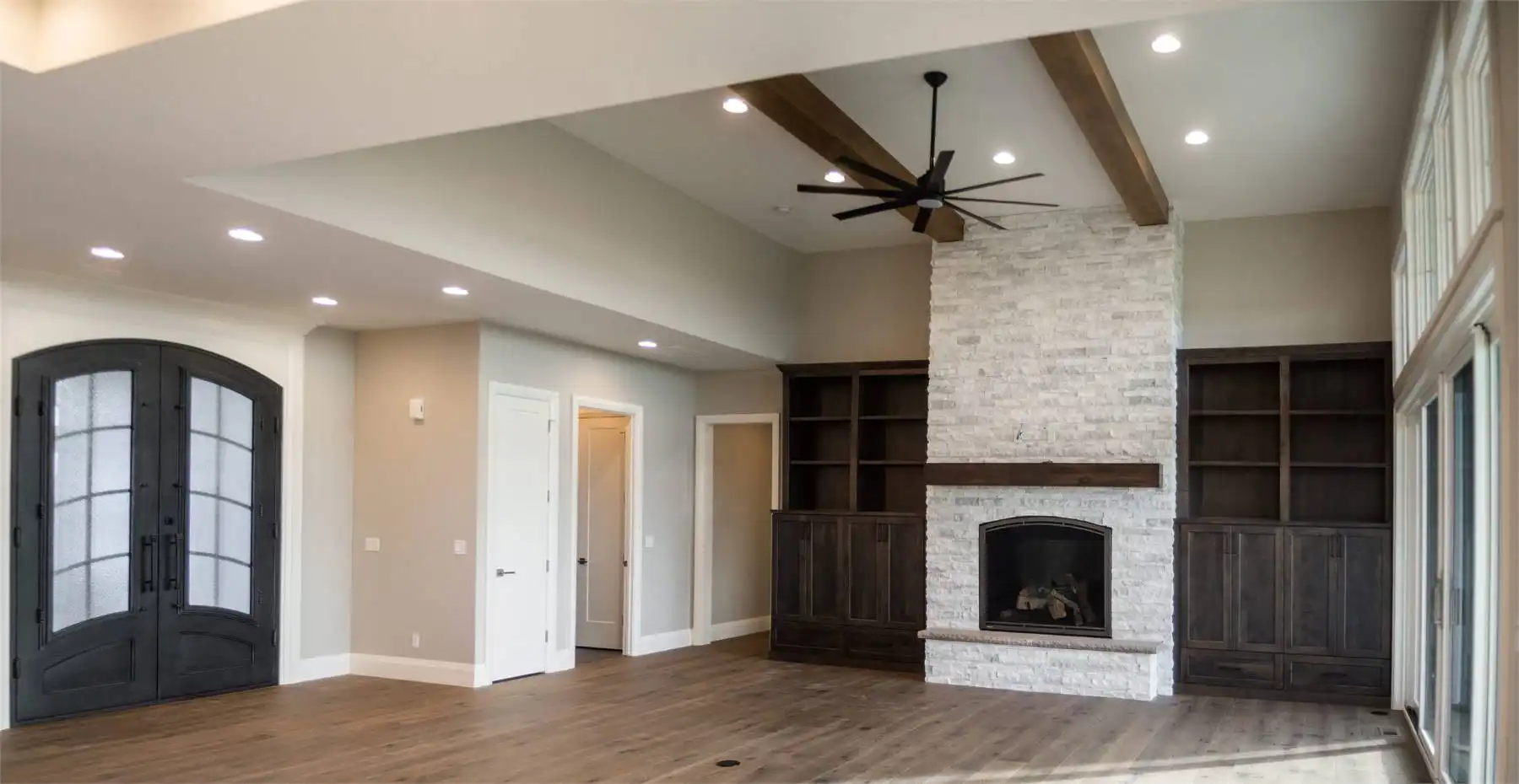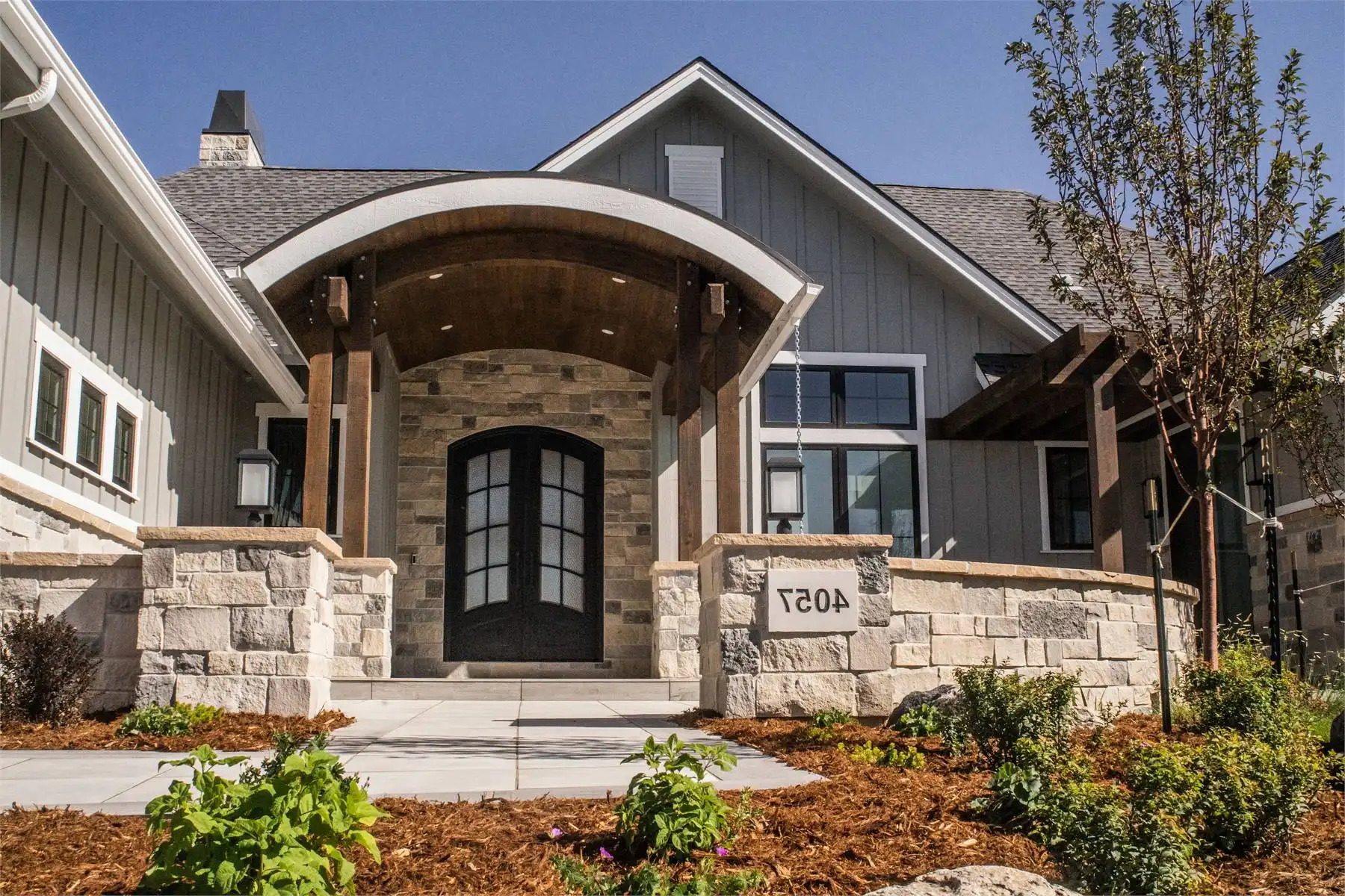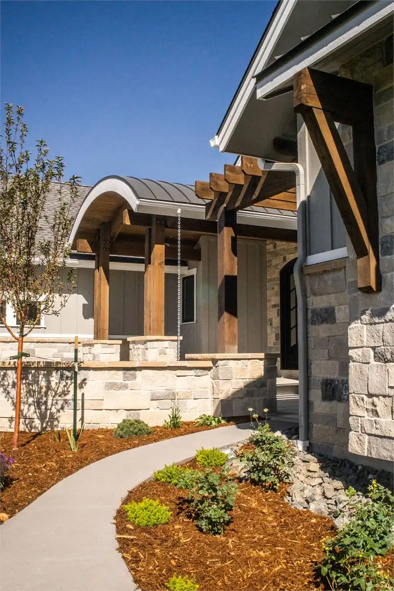 This charming 3,082 square foot ranch home combines Craftsman character with modern features designed for today’s lifestyle. The open floor plan centers around a spacious great room, flowing seamlessly into the dining area and kitchen with island and butler’s pantry. A cozy fireplace and access to a covered rear porch create a welcoming atmosphere for gatherings. The main-floor primary suite includes a luxurious bath with double vanity, separate tub and shower, and generous walk-in closet. Two additional bedrooms share a split layout, providing privacy and comfort. Bonus spaces like the exercise room, rec room, and home office ensure plenty of room for both work and play. The outdoor kitchen and courtyard make entertaining a joy, while unfinished lower-level areas allow for future customization. This warm and inviting plan is perfect for families who value both comfort and flexibility.