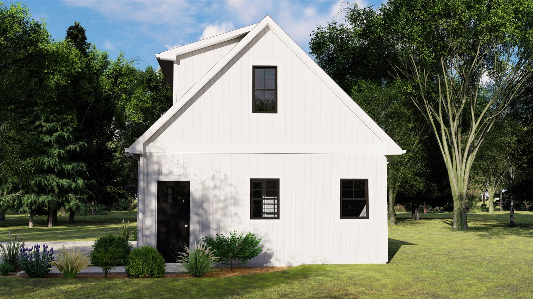 Plan 11484 is a lovely country-style garage with parking for two. This thoughtful design also includes a powder room in the garage and a bright loft upstairs. It's great for storage or hobbies!
