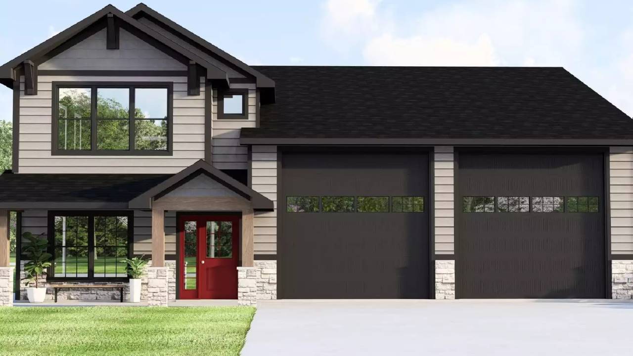 House Plan 11487 brings together contemporary design and Craftsman charm in a flexible two-story layout. The first floor features an impressive 2,495 sq. ft. garage with tandem and workshop space—ideal for vehicles, hobbies, or home-based businesses—plus an office and half bath. Upstairs, an open kitchen with a large island flows into the living room, creating a bright and inviting atmosphere. The two bedrooms share a spacious full bath with a double vanity. With its modern lines, covered entry, and functional work-live balance, this plan is ideal for small families, downsizers, or anyone seeking a compact yet capable Craftsman home.