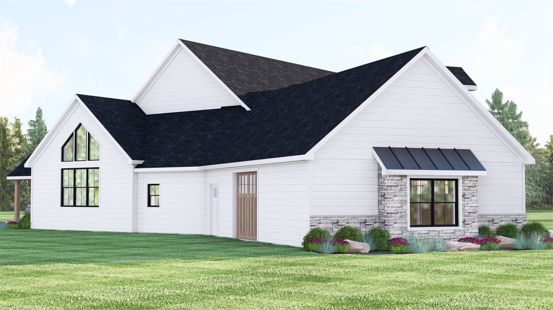 House Plan 11488 offers 3,878 sq. ft. of modern farmhouse charm designed for both elegance and practicality. The main level highlights a vaulted great room with an open connection to the dining area and large island kitchen with a walk-in pantry. The private primary suite includes a relaxing bath with soaking tub, walk-in closet, and easy access to the laundry room. A front office, home gym, and mudroom with built-ins provide useful, flexible spaces. Upstairs, you’ll find four bedrooms, two bathrooms, and a central loft overlooking the living space below. The angled 3-car garage enhances curb appeal and includes a large bonus room above. Blending style, storage, and modern livability, this farmhouse is an ideal fit for families seeking open, connected spaces.