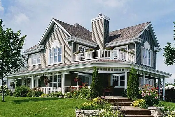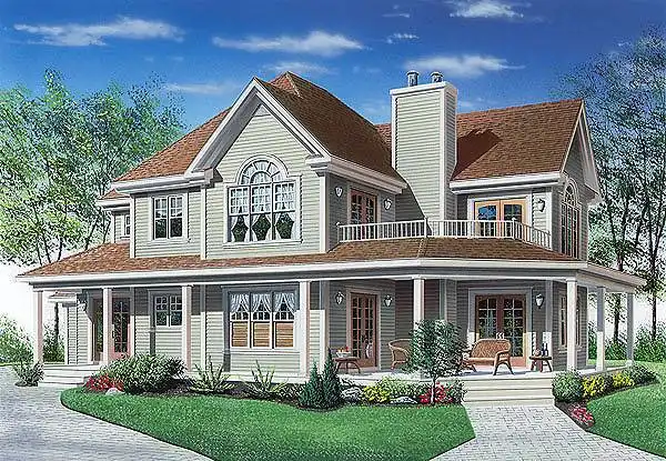 This country home plan has a farmhouse feel. Inside, gather friends to chat in the comfortable living room, complete with fireplace. The unique kitchen serves any meal in style. On the upper floor, a cathedral ceiling and a fireplace enhance the master bedroom. An outdoor balcony is just steps away. The posh bath boasts a large tub to soak your cares away. You'll enjoy the upstairs family room for reading or relaxing.