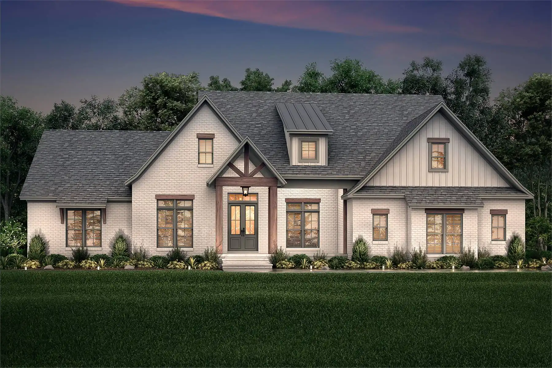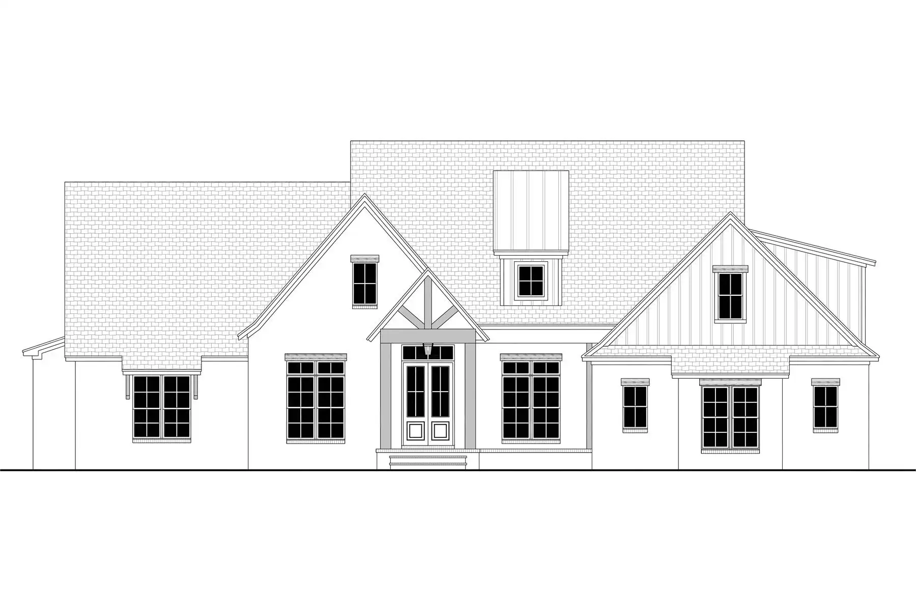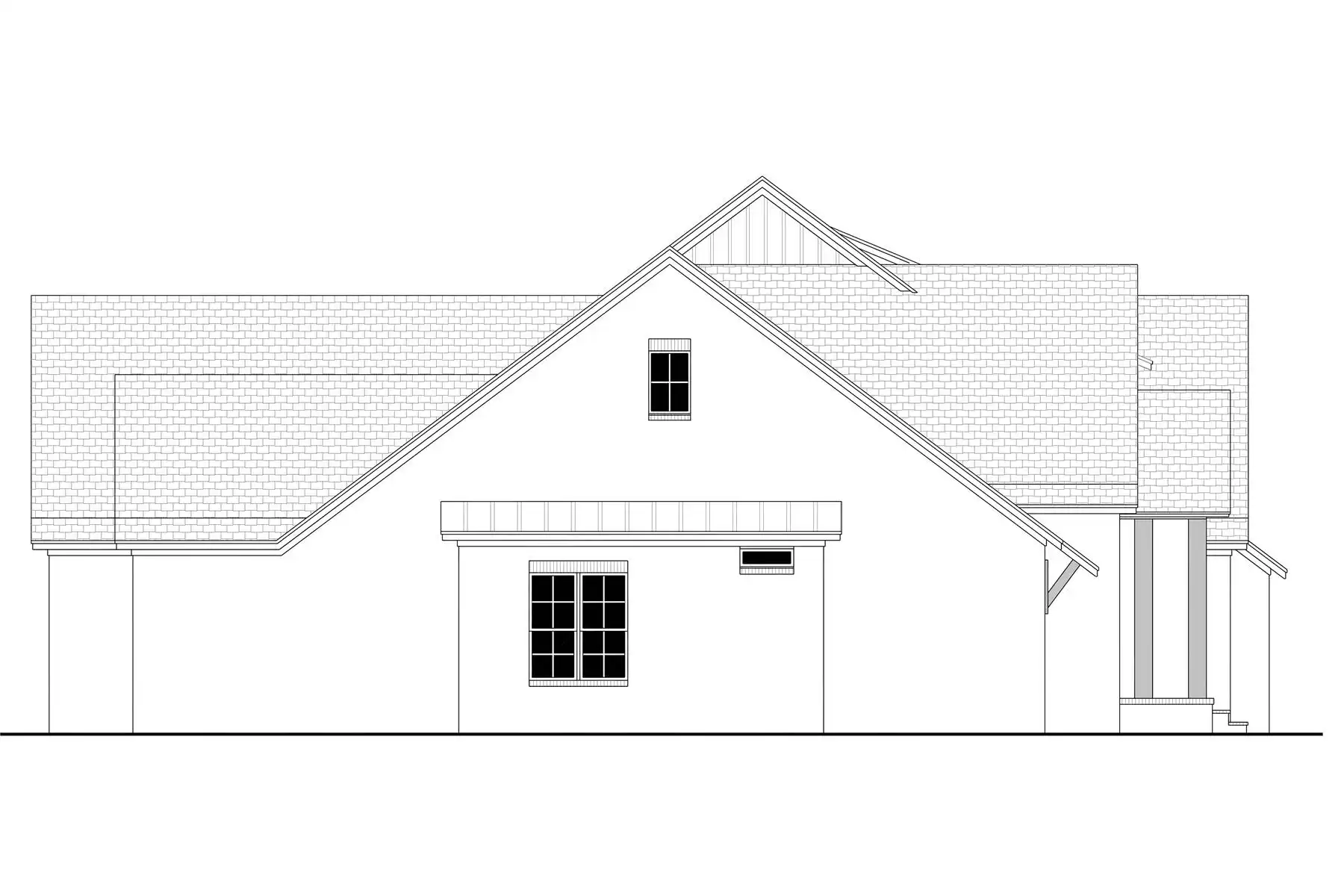 House Plan 11496 answers the needs of larger families with five bedrooms and three-and-a-half bathrooms in 2,985 square feet. In the middle of the floor plan, the dining area sits next to the foyer while the L-shaped island kitchen overlooks the living area in back. Don't overlook that rear porch! The five-piece primary suite is in the hallway with the laundry room and mudroom behind the garage while the other four bedrooms are split into front and back hallways on the opposite side of the house, with a full bath for each pair. Need even more living or sleeping quarters? Just look to the bonus room!