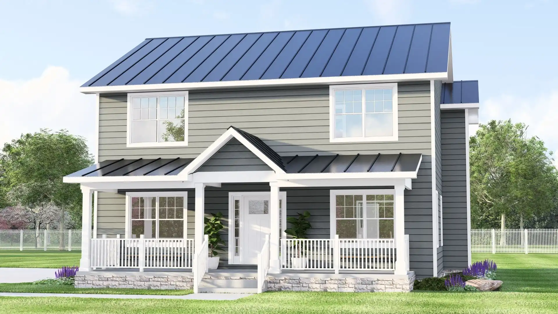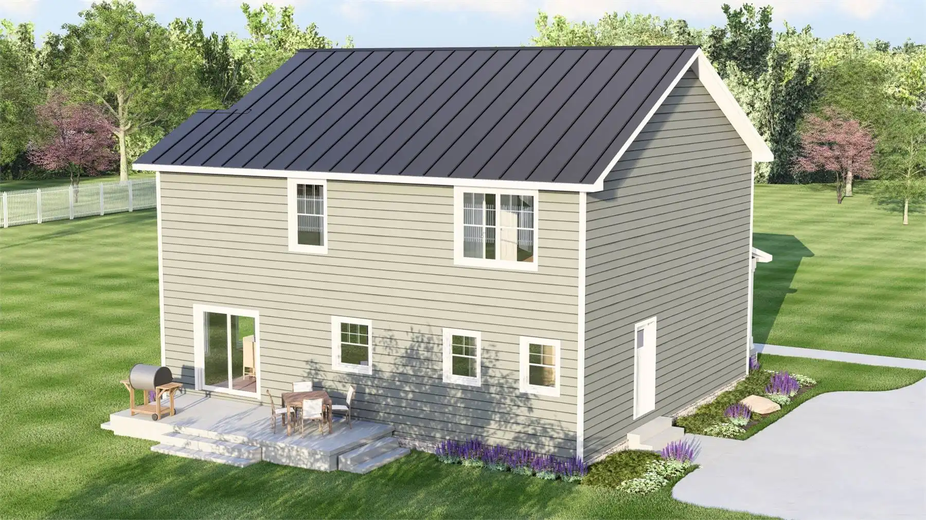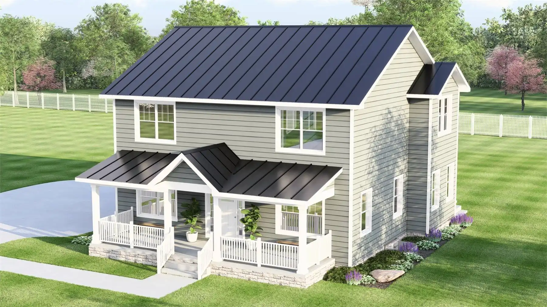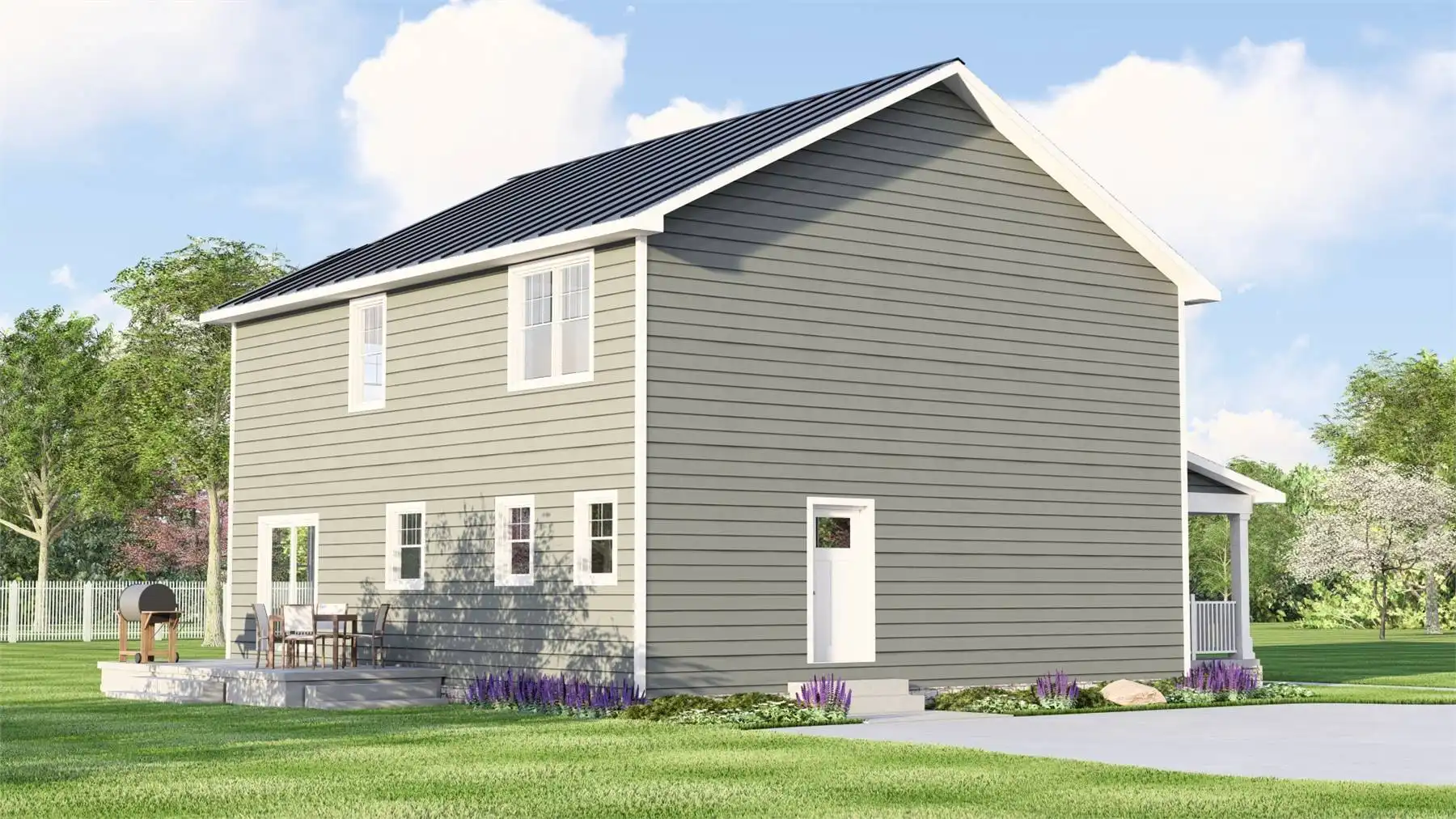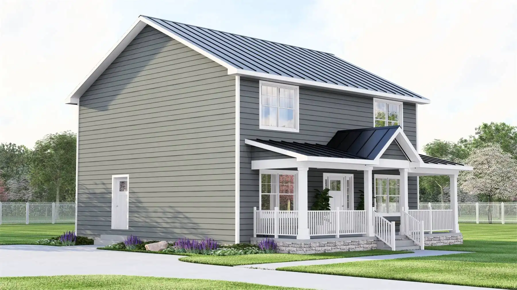House Plan 11506 is a lovely two-story traditional home with 2,322 square feet, four bedrooms, and two-and-a-half baths. The main level includes the common areas, including the living room and the eat-in kitchen with the island kitchen beside dining space. There's also an office in front and the laundry room and powder room in the back hallway. The upstairs bedrooms include a three-piece primary suite and three bedrooms that share a divided four-piece hall bath.