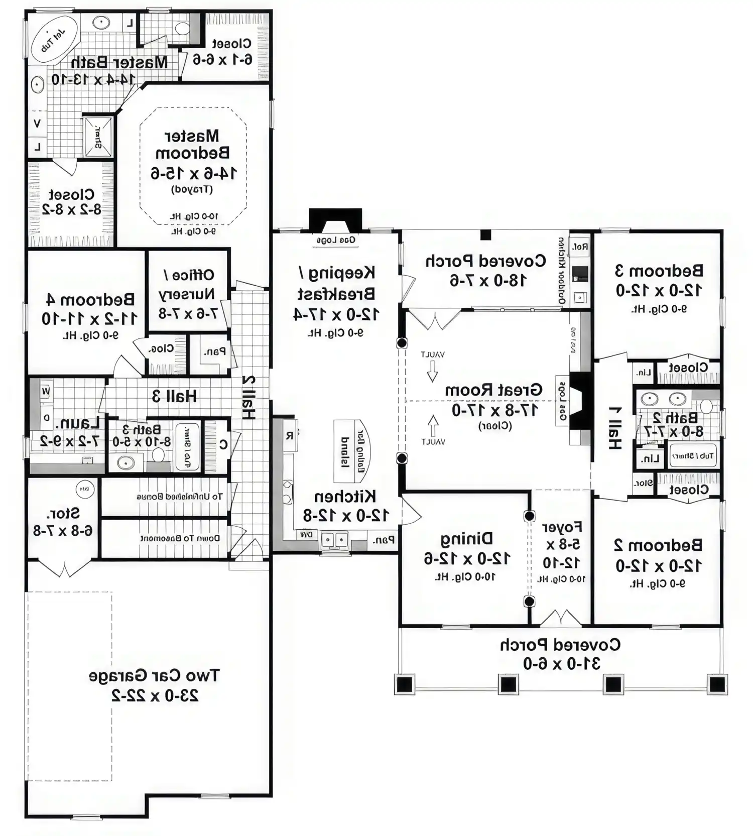 This charming 4-bedroom design offers timeless curb appeal and an interior made for everyday comfort. The front porch delivers a warm Southern welcome, while a covered rear porch provides the ideal setting for outdoor dining or relaxing. Inside, the vaulted great room with fireplace forms the heart of the home and flows easily into the kitchen and breakfast nook. A large center island, walk-in pantry, and generous cabinet space support both family routines and hosting. The split-bedroom layout places the master suite in its own private corner, featuring dual walk-in closets and a spa-inspired bath with a jet tub, separate shower, and double vanities. A nearby office or nursery adds convenience for work or family needs. Upstairs, the optional bonus room allows for future expansion, and the walk-in laundry room and two-car garage help keep the home organized and functional.