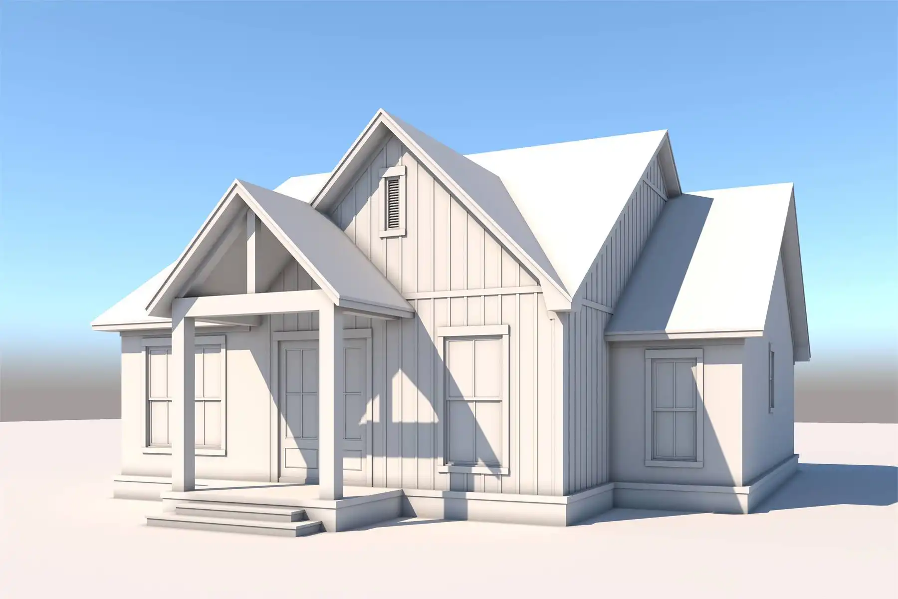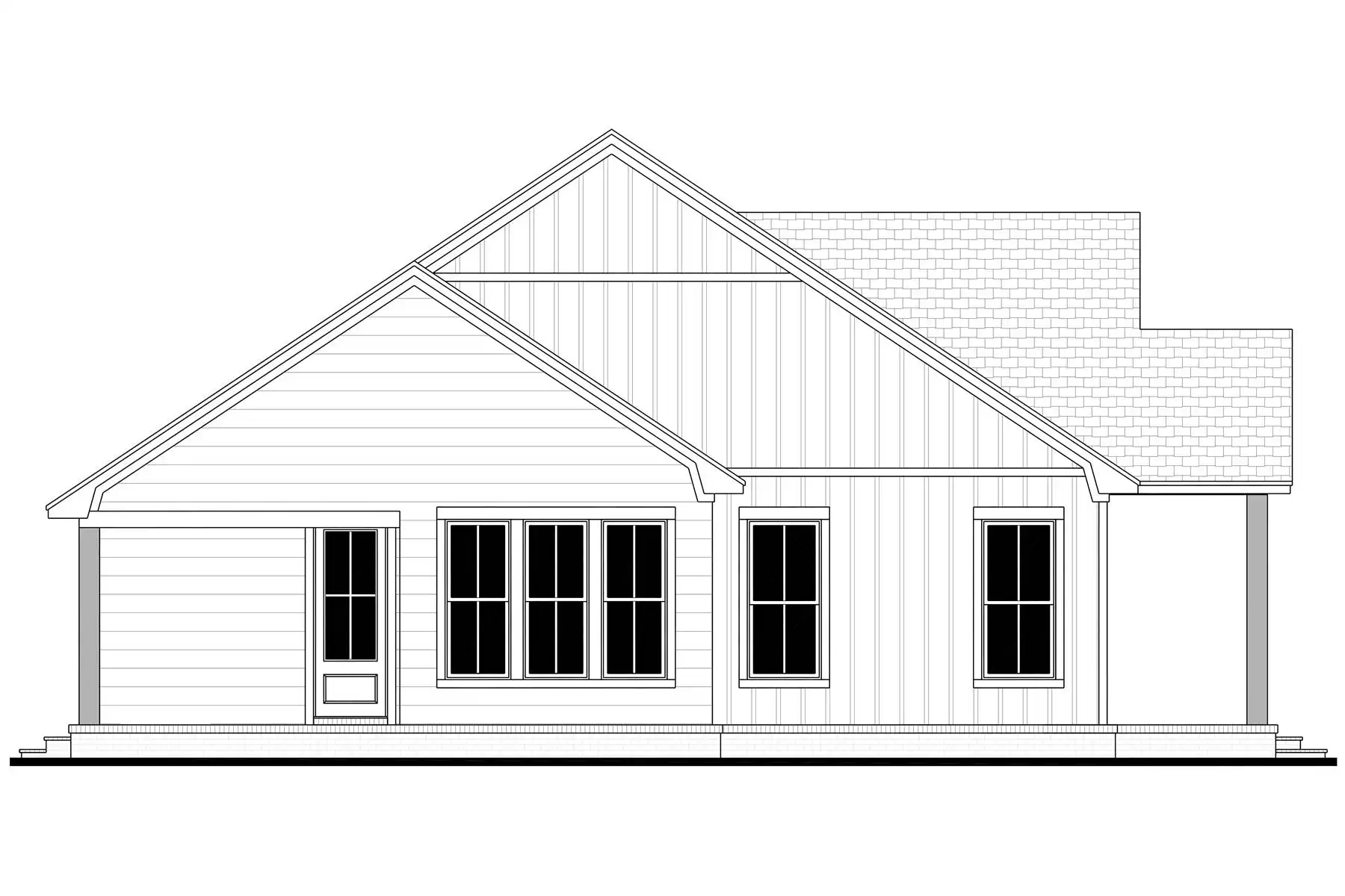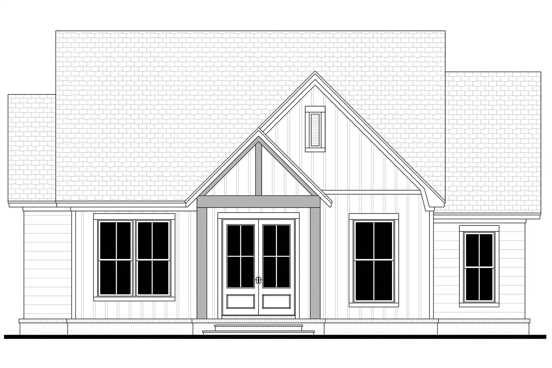 This inviting cottage farmhouse blends cozy charm with smart, efficient living in a beautifully planned small footprint. The layout includes 2 bedrooms and 2 bathrooms, plus a flexible home office that can easily function as a nursery for a growing family. An open-concept great room connects effortlessly to the dining area and kitchen, creating a warm and welcoming space for daily living and casual entertaining. The kitchen features an eat-at bar and a walk-in pantry, offering both practicality and style. Sliding glass doors off the dining area open to a rear porch, providing a natural extension of the living space outdoors. Thoughtfully designed and full of cottage farmhouse character, this home delivers comfort, flexibility, and timeless appeal without unnecessary square footage.