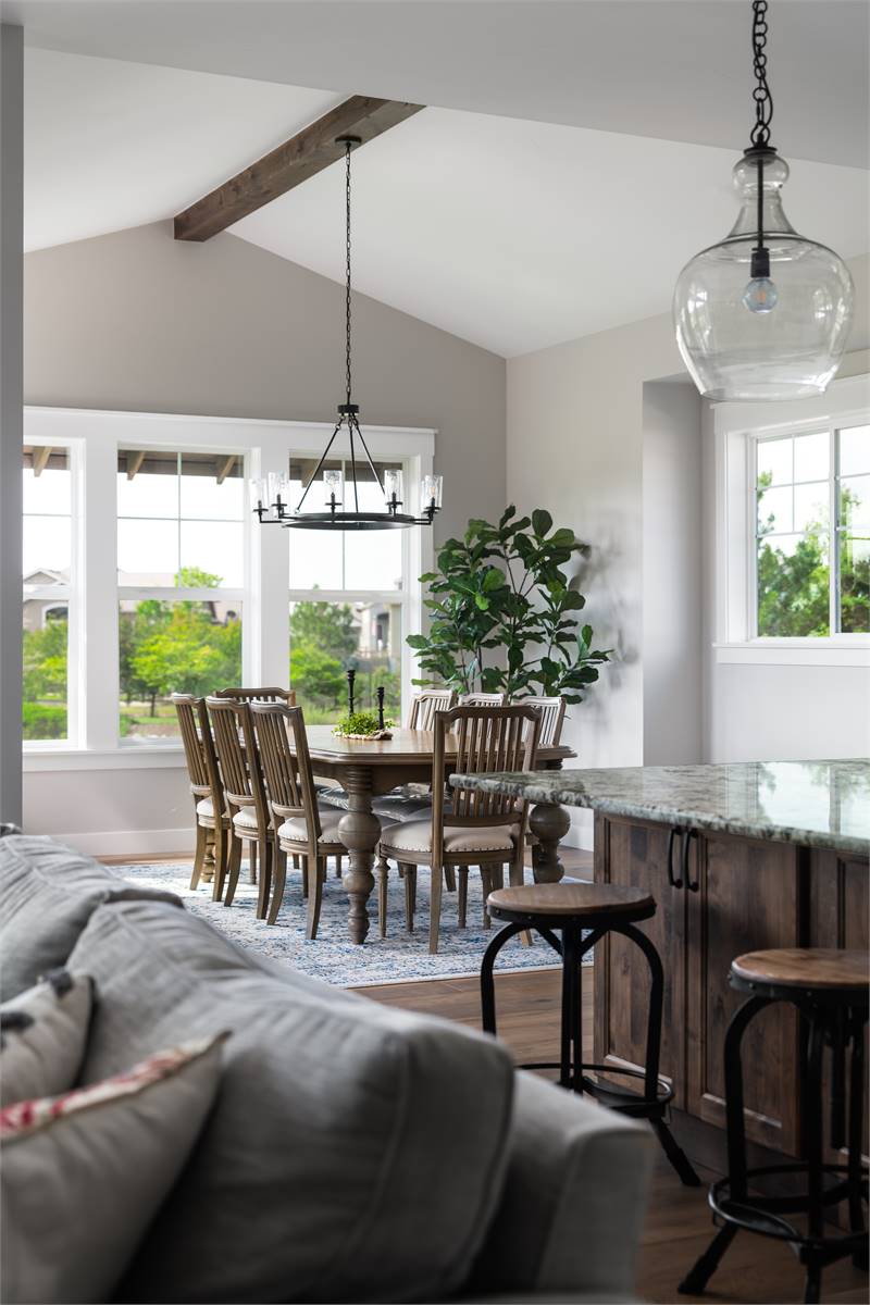 This 3-bedroom, 2.5-bath Country Ranch offers 2,507 square feet of relaxed and functional living space. The open concept design creates a natural flow between the kitchen, dining area, and great room, making it ideal for entertaining or quiet evenings at home. A spacious kitchen island and pantry provide plenty of storage and workspace for family meals. The primary suite is tucked away for privacy and includes a luxurious bath and large walk-in closet. Additional highlights include a home office, rec room, and covered porches for indoor-outdoor living. This thoughtfully designed home perfectly balances comfort, style, and everyday livability for today’s families.