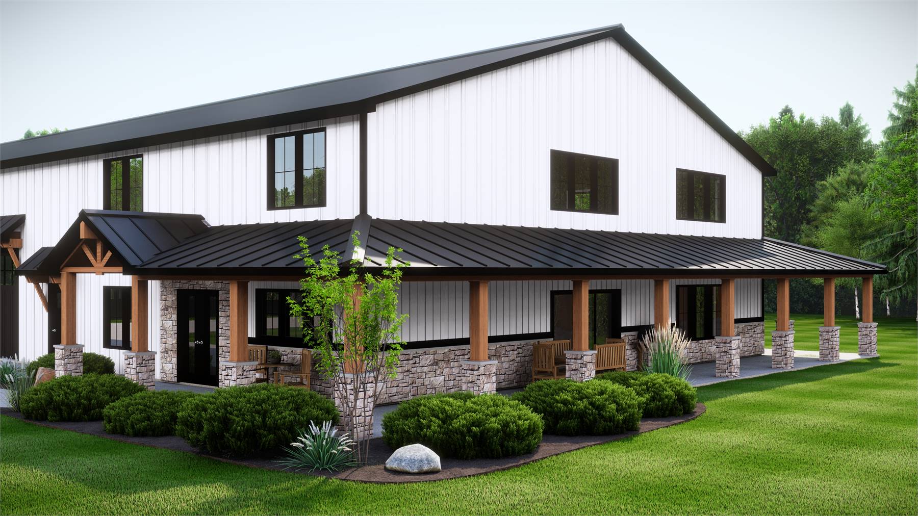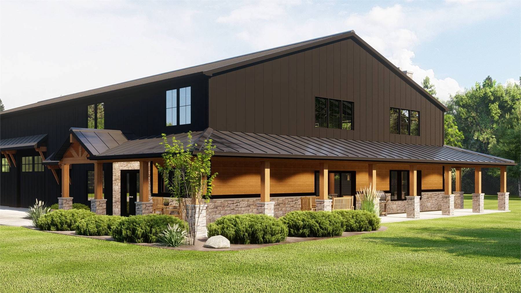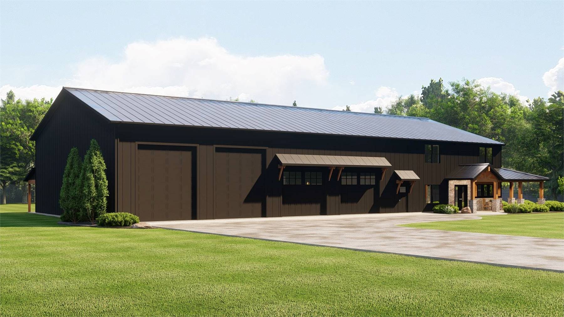 House Plan 11539 is a bold barndominium that pairs a 3,043-square-foot interior with a massive four-car garage with RV bays, making it a great choice for a family that needs parking that goes above and beyond! The main floor offers open-concept living with an island kitchen and two-story dining and living spaces, a den, a luxe five-piece primary suite, the laundry room, and the powder room. Upstairs, there's a loft, two bedrooms, and a hall bath to share. There's a second powder room in the garage, which is ideal if you plan to have a workshop!