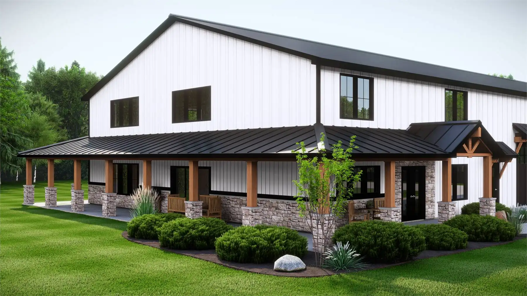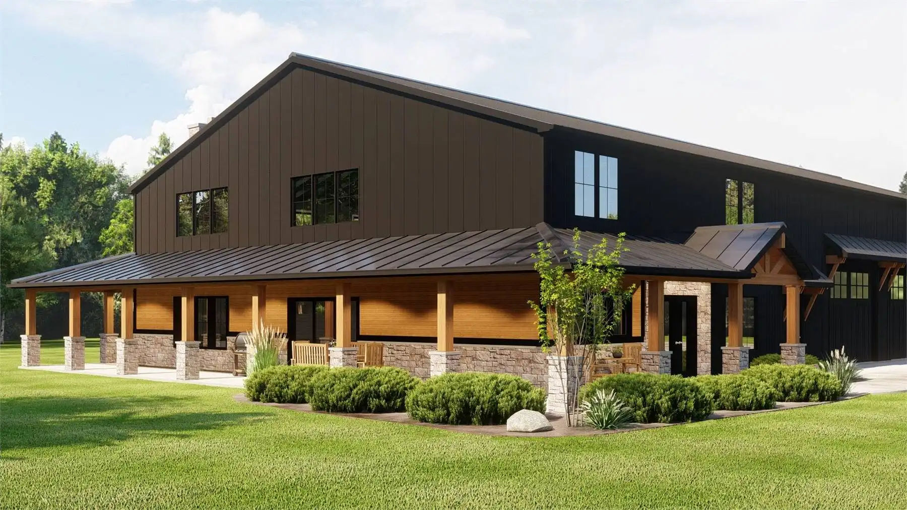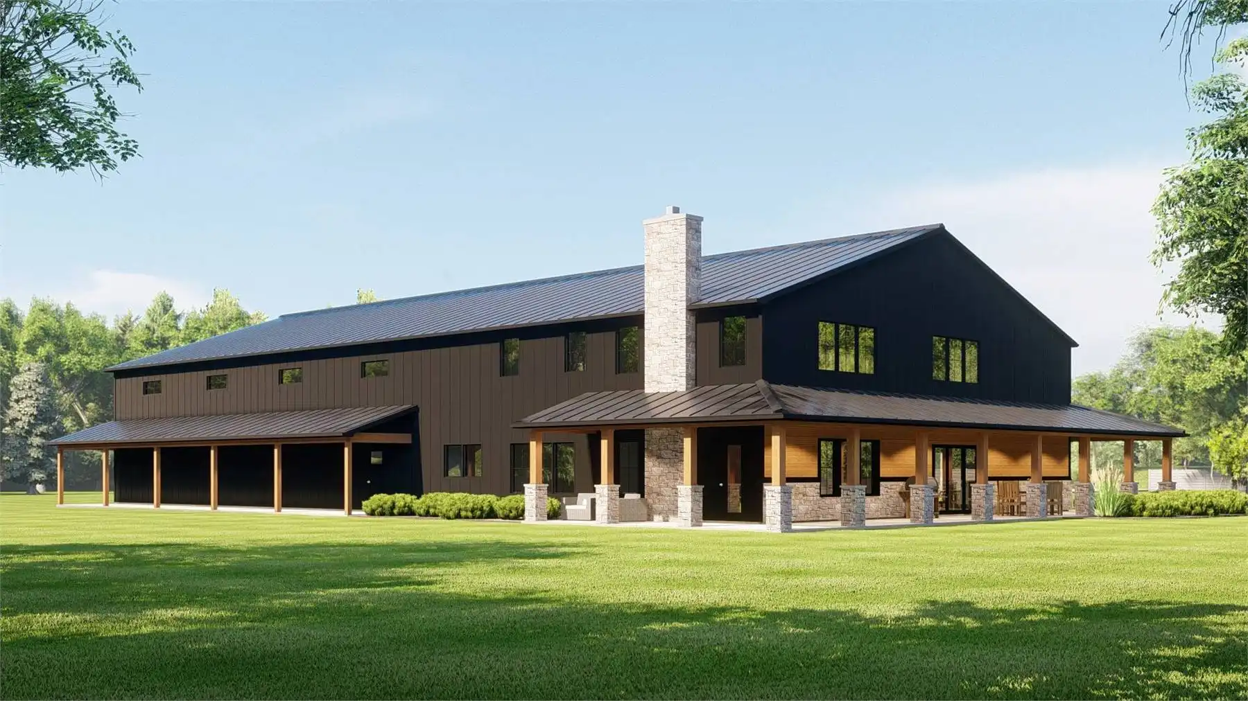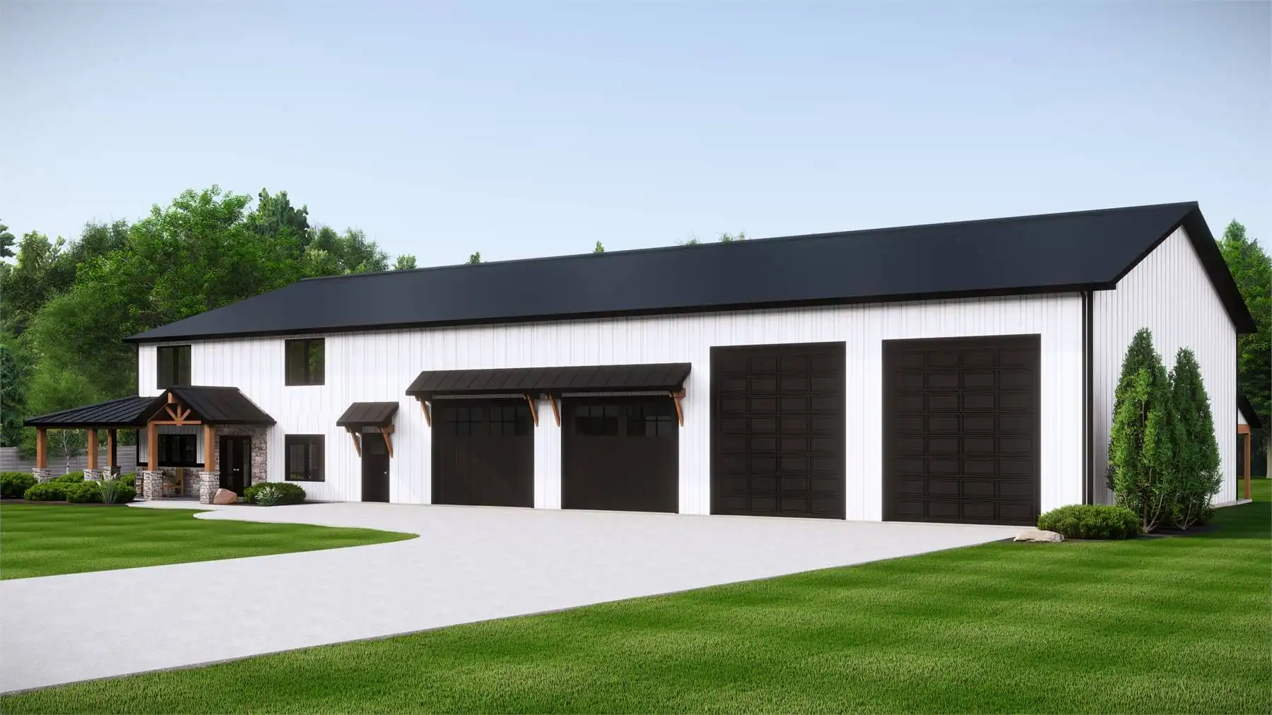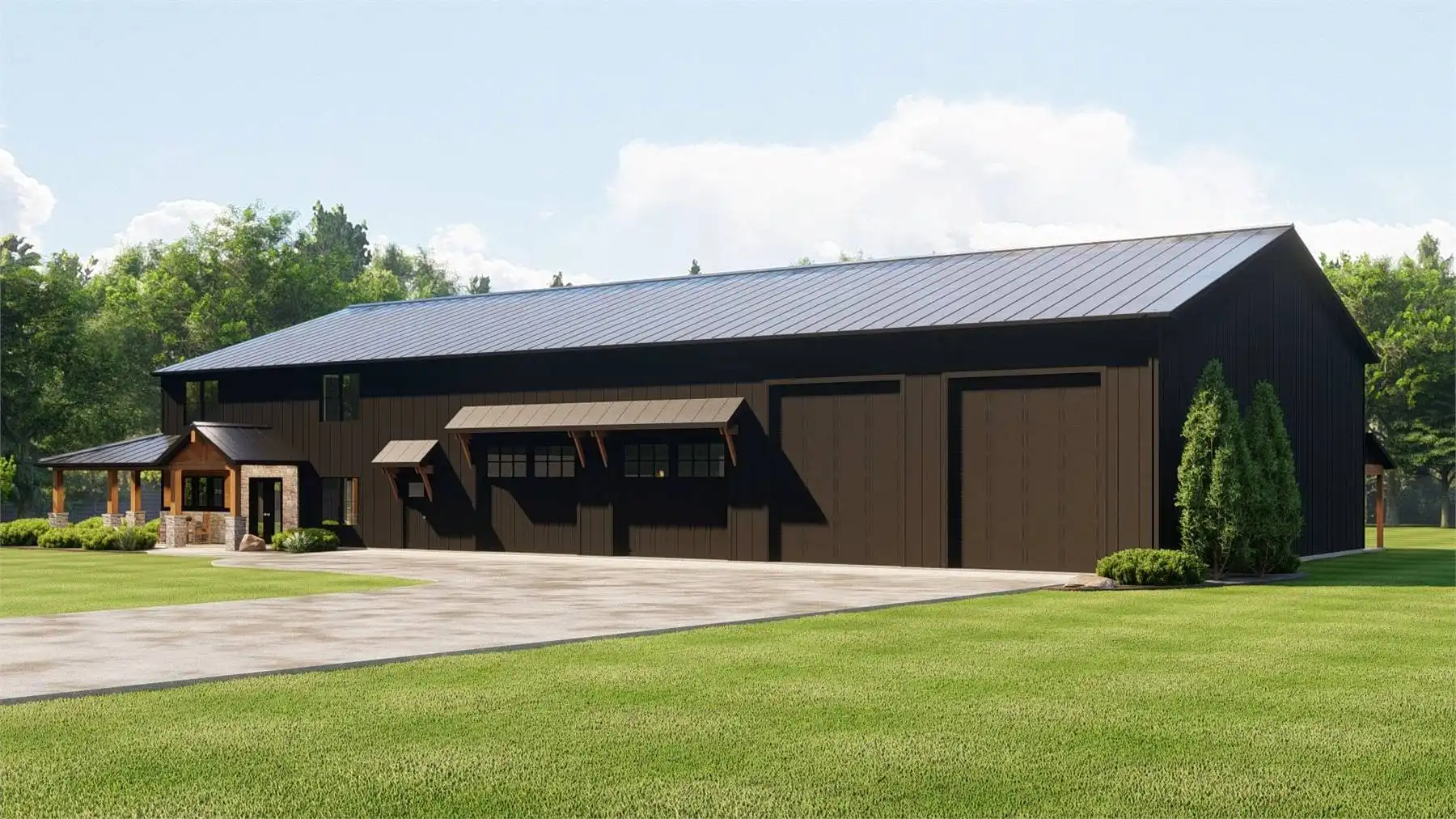 House Plan 11539 is a bold barndominium that pairs a 3,043-square-foot interior with a massive four-car garage with RV bays, making it a great choice for a family that needs parking that goes above and beyond! The main floor offers open-concept living with an island kitchen and two-story dining and living spaces, a den, a luxe five-piece primary suite, the laundry room, and the powder room. Upstairs, there's a loft, two bedrooms, and a hall bath to share. There's a second powder room in the garage, which is ideal if you plan to have a workshop!