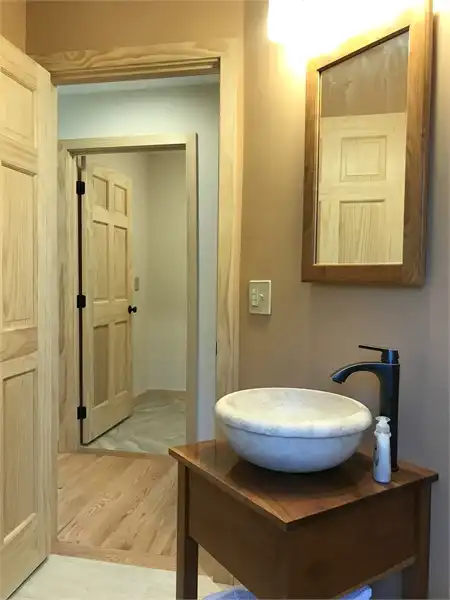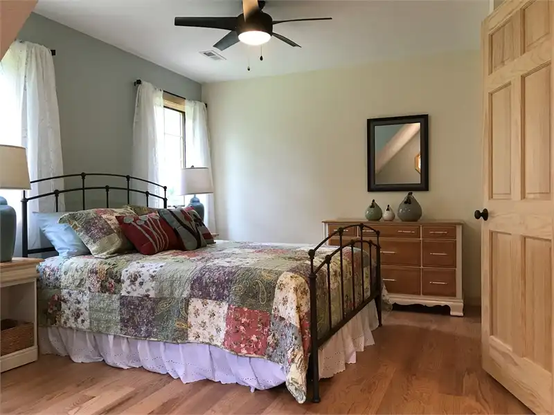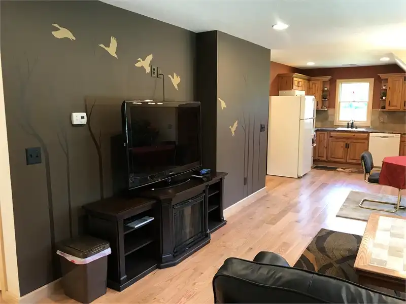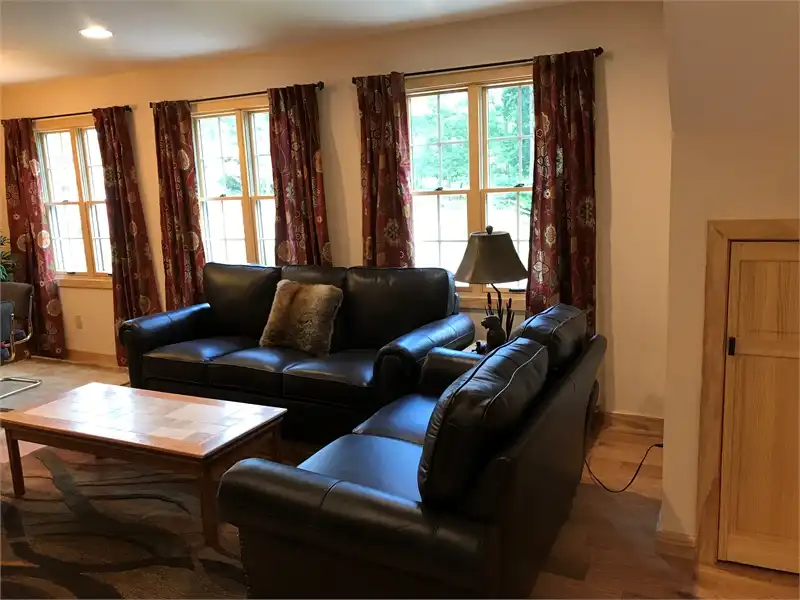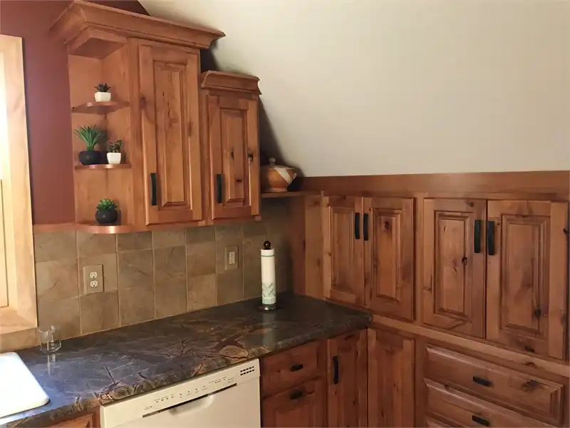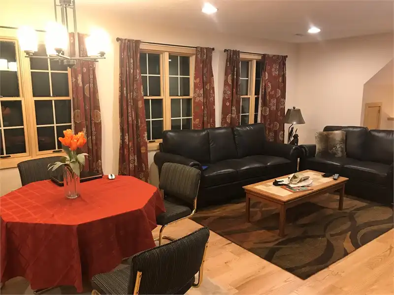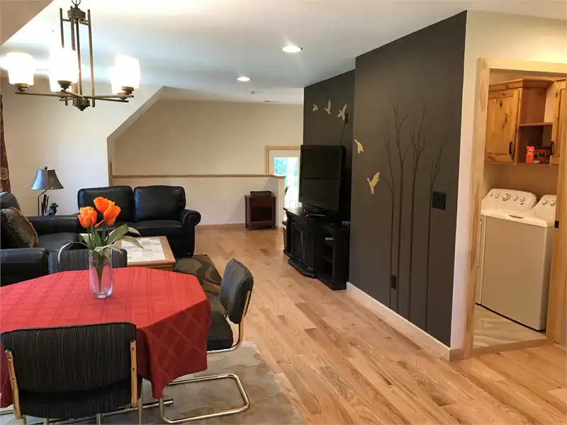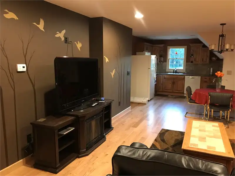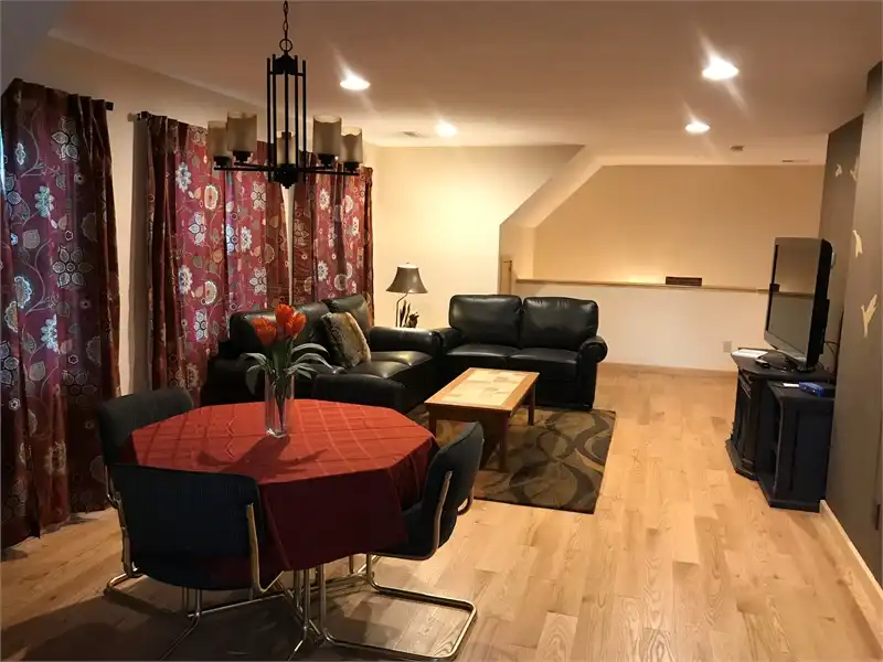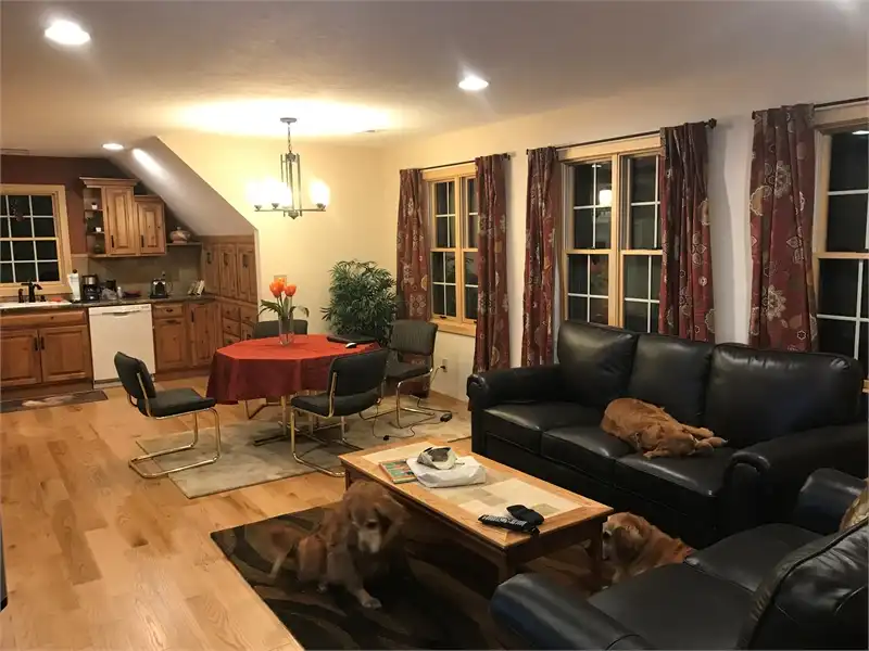 This garage plan gains a bungalow feel, because of its two shed dormers. On the upper level lies a sizable apartment. A fireplace warms the family room, and the U-shaped kitchen serves the versatile dining area.