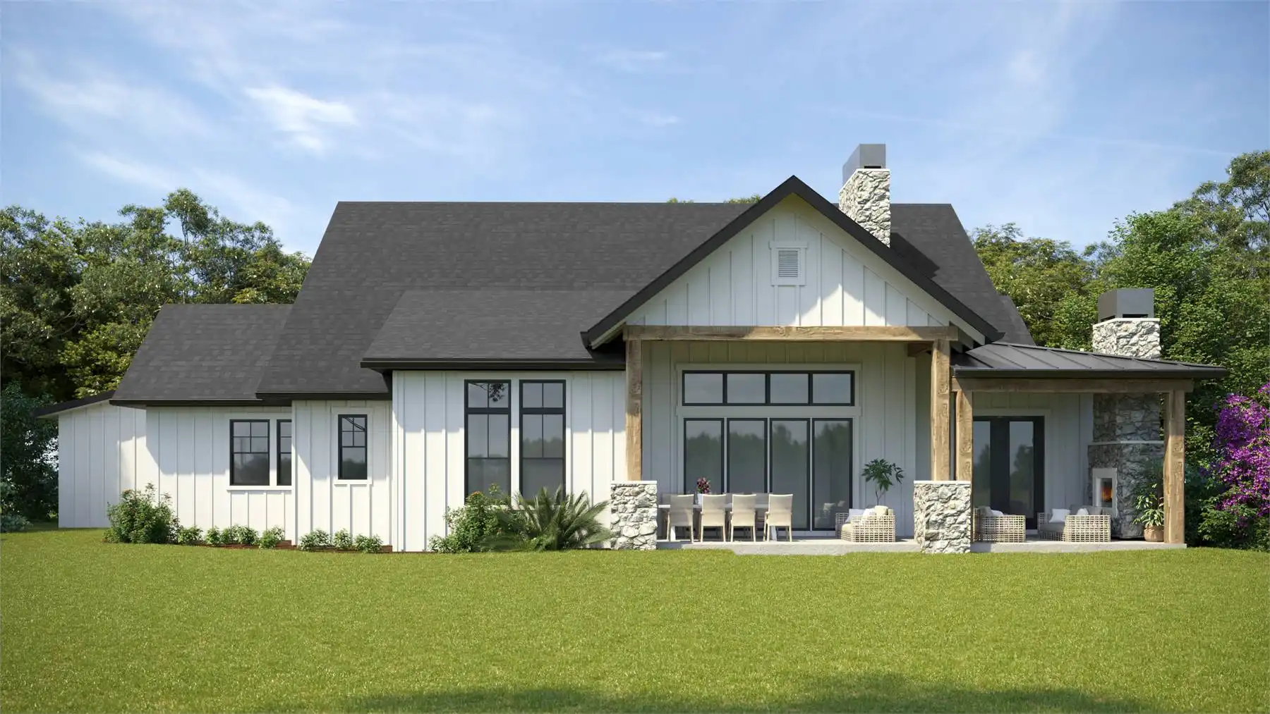 This charming 2,468 square foot modern ranch is designed for easy living and stylish comfort. The open layout flows from a welcoming foyer into the great room, where natural light enhances the inviting atmosphere. The kitchen features a large island, butler’s pantry, and eating bar—perfect for gatherings and family meals. The main-floor primary suite includes a luxurious bath with dual vanities, a separate tub and shower, and a generous walk-in closet. Upstairs, additional bedrooms provide private retreats for family or guests. Outdoor living shines with covered front and rear porches that extend your entertaining space. Blending modern design with classic craftsmanship, this home offers a warm and timeless space where memories are made.