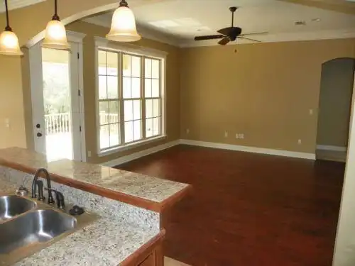 Designed for comfort and practicality, this home features 1,575 square feet of well-planned heated living space. The open great room flows seamlessly into the dining area and kitchen, making gatherings feel natural and connected. The kitchen includes a central island, peninsula eating bar, breakfast nook, and walk-in pantry that support both casual meals and entertaining. The primary bedroom is privately located on the main floor and offers a walk-in closet along with a double vanity and separate tub and shower. Secondary bedrooms are thoughtfully separated to provide flexibility for family or guests. A front-entry attached garage, mud room, and first-floor laundry add everyday convenience. With covered porches at both the front and rear, this home offers a comfortable layout that feels inviting from the moment you arrive.