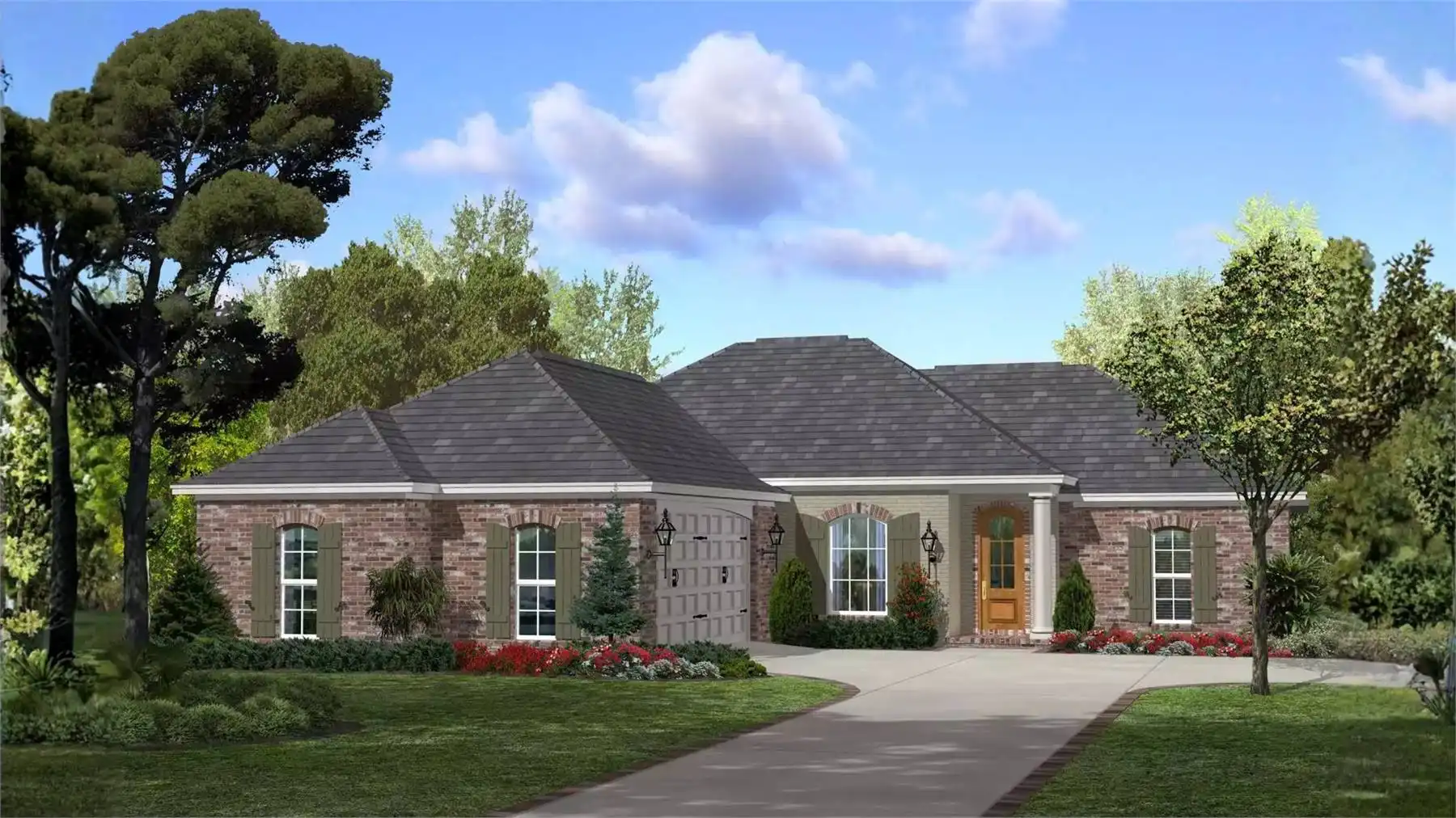 Designed with comfort and practicality in mind, this home features 1,600 square feet of well-planned heated living space. The open great room flows seamlessly into the dining area and kitchen, making entertaining feel natural and effortless. The kitchen is equipped with an island, peninsula eating bar, breakfast nook, and pantry to support both casual meals and gatherings. The main-floor primary bedroom offers a relaxing retreat with his and hers closets, a double vanity, and a separate tub and shower. Secondary bedrooms are placed in a split arrangement, offering flexibility for family or guests. A front-entry attached garage with courtyard-style access, along with a mud room and first-floor laundry, enhances daily functionality. With covered porches at both the front and rear, this home delivers a comfortable layout that feels welcoming and well-balanced.