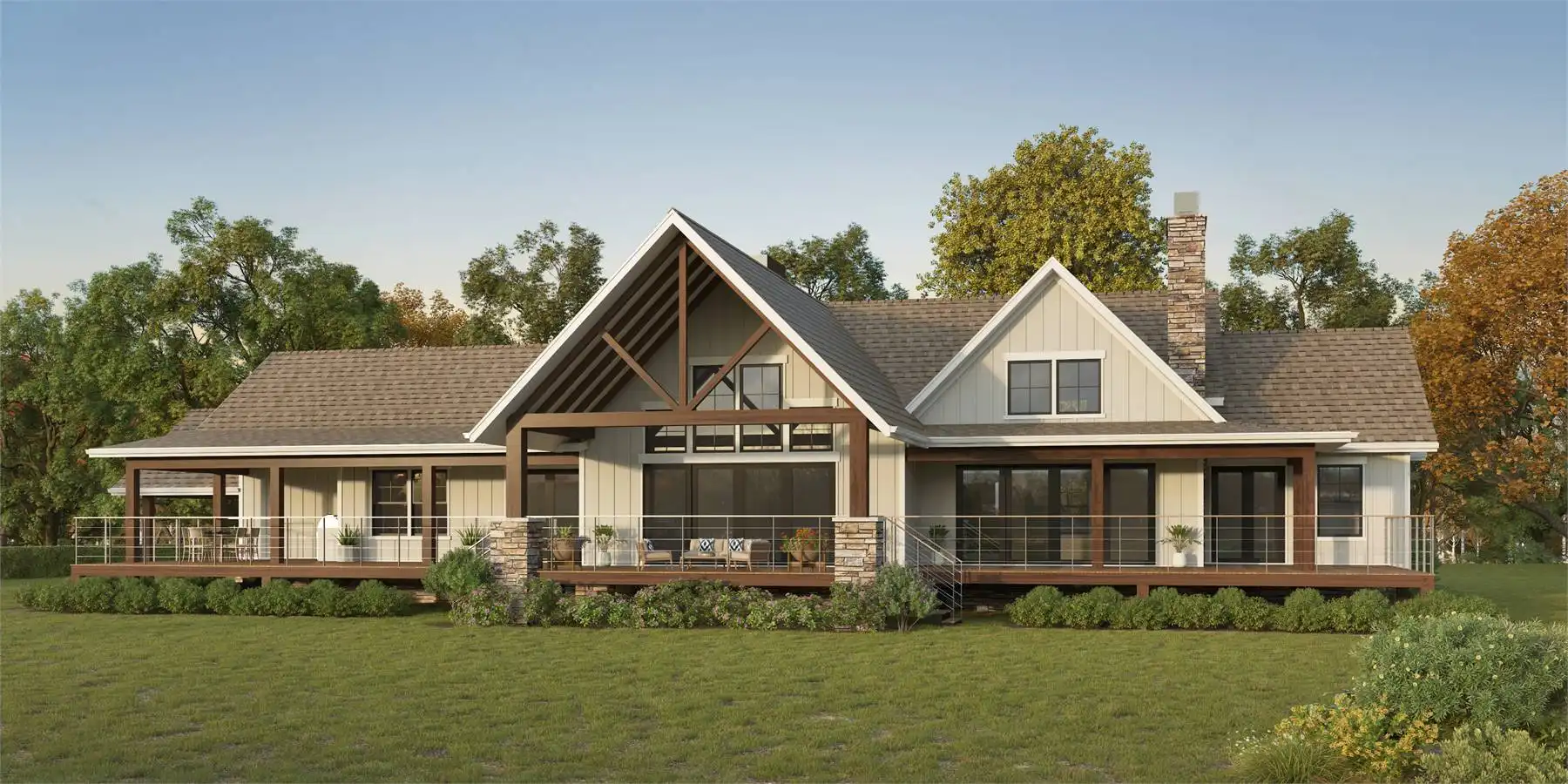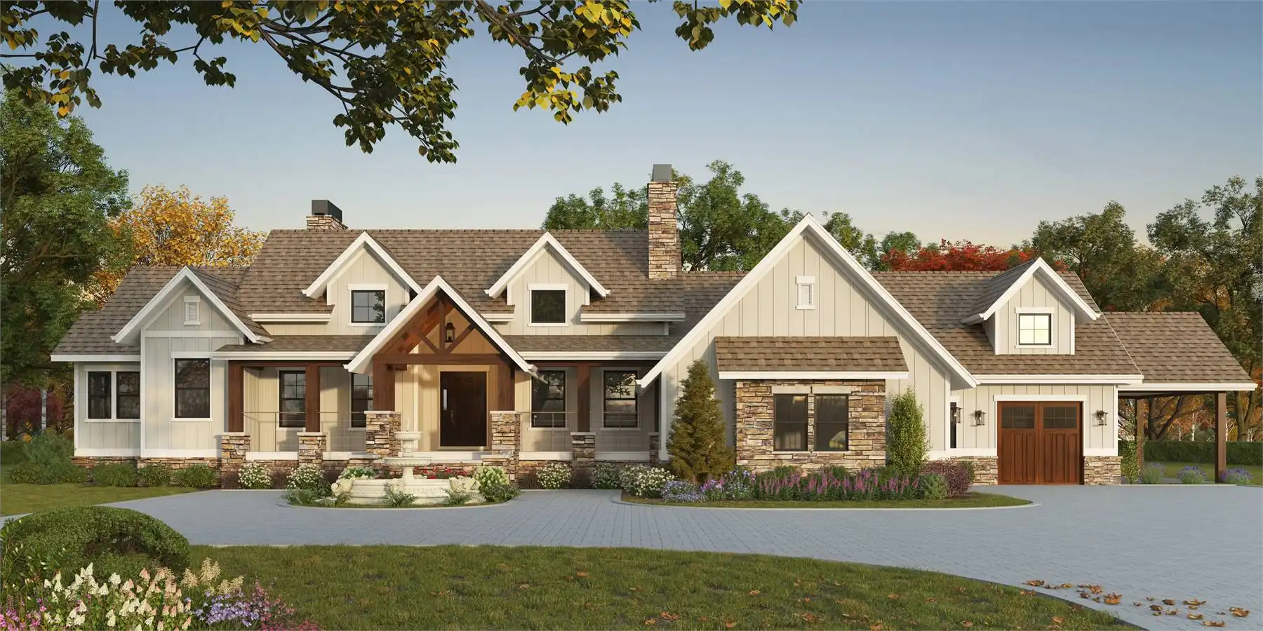 This elegant modern ranch blends country charm with thoughtful design. The exterior’s balanced proportions and covered porches create a warm and welcoming first impression. Inside, an open-concept great room features a beautiful fireplace and connects effortlessly to the dining area and chef’s kitchen with an island and butler’s pantry. The primary bedroom suite offers a peaceful retreat with his and hers closets and a spa-inspired bath. Two additional bedrooms and a recreation room provide plenty of space for guests and family. With an office, mudroom, and carport enhancing everyday convenience, this home is as practical as it is beautiful. Perfect for those who love comfort, craftsmanship, and easy indoor-outdoor living.