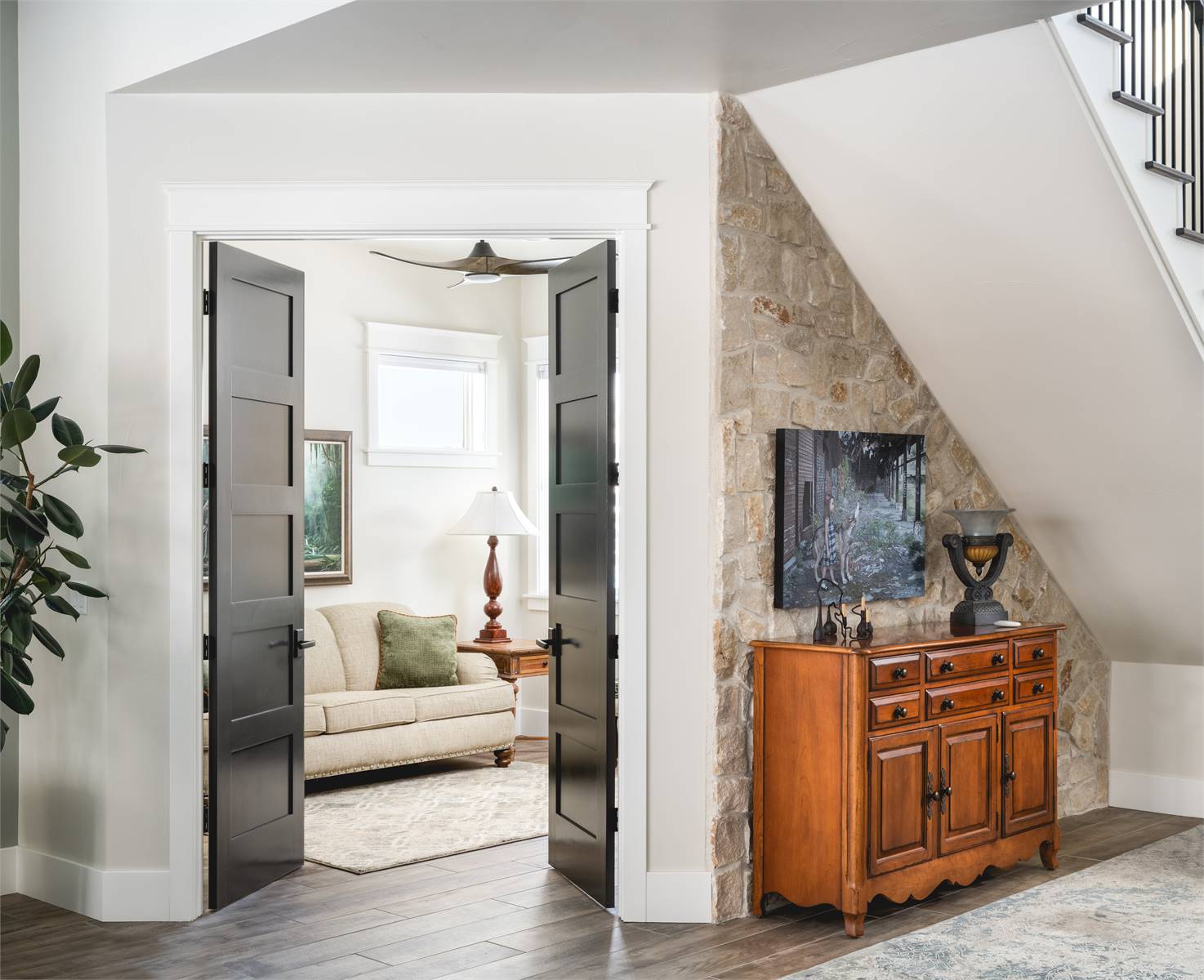 This charming 4-bedroom Craftsman home offers 3,874 square feet of relaxed, thoughtful design. The kitchen features both an island and peninsula, opening to the great room for easy flow and connection. A main-level primary suite brings convenience and comfort, while an additional suite upstairs creates space for guests or multi-generational living. The home office and library/media room add flexibility for work and leisure. With covered porches in the front and rear, there’s plenty of room to unwind outdoors. Warm, balanced, and inviting, this home beautifully combines traditional charm with modern comfort.
