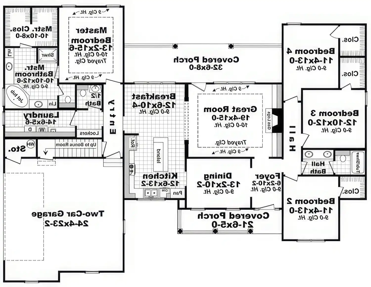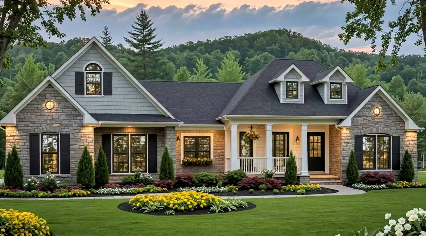 House Plan 11594 blends country styling with a practical and highly efficient layout, featuring 4 bedrooms, 2.5 bathrooms, and 2,272 sq. ft. of living space. The open concept kitchen, breakfast nook, and great room create a natural hub for daily life and entertaining, complete with rear-porch views and a welcoming fireplace. The primary suite enjoys its own wing of the home with a trayed ceiling, dual walk-in closets, and a luxurious bath with a jetted tub and separate shower. Three additional bedrooms are grouped together with a shared bath, perfect for children or guests. Homeowners will appreciate the dedicated laundry with storage, convenient half bath, and the side-entry two-car garage. A versatile unfinished bonus room upstairs allows the home to grow with changing needs. With outdoor living, classic curb appeal, and a split-bedroom design, this plan delivers both beauty and everyday comfort.