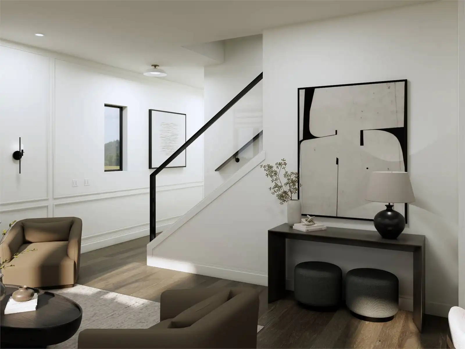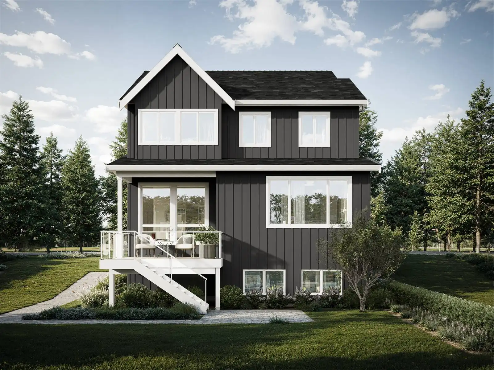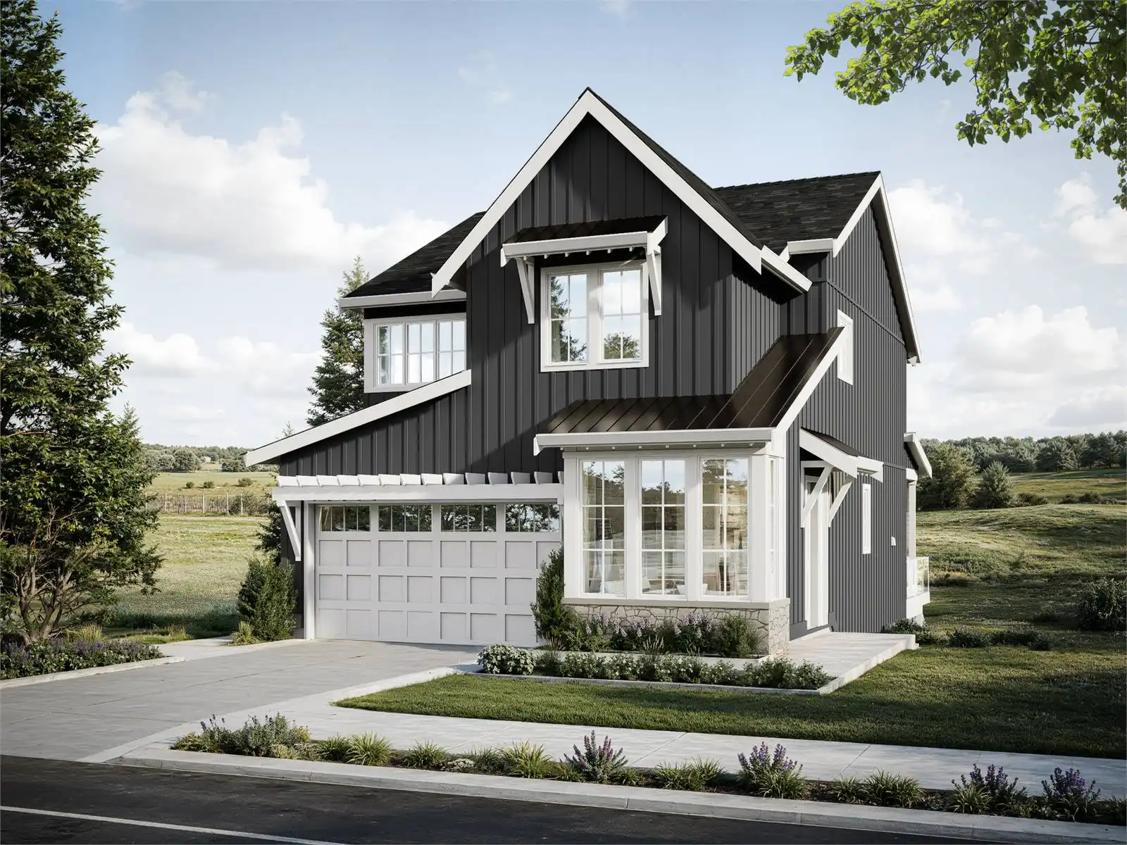This charming 1,968-square-foot Modern Farmhouse plan offers a perfect balance of style, comfort, and versatility. The bright main level opens with a welcoming foyer leading to a private office, ideal for remote work or quiet focus. Beyond, the open kitchen with a large island connects effortlessly to the dining and living areas, creating a perfect hub for family gatherings. Upstairs, the vaulted primary suite offers relaxation and privacy, accompanied by three spacious bedrooms and a shared bath. The optional lower level adds flexible living space, featuring a recreation room, guest bedroom, and even a secondary kitchen. Outdoor living is enhanced with a cozy rear deck that extends the home’s inviting feel. Designed for connection and convenience, this plan makes modern family living truly effortless.