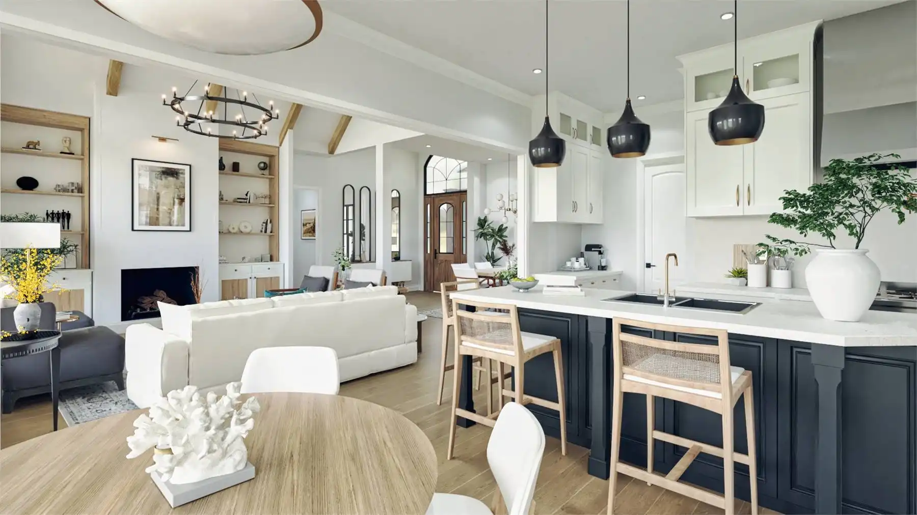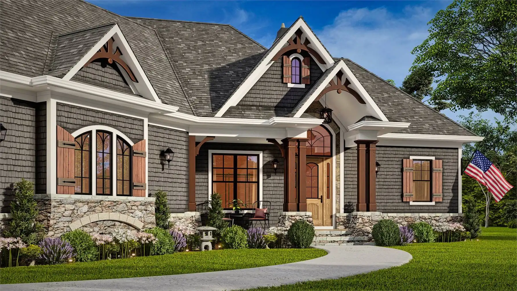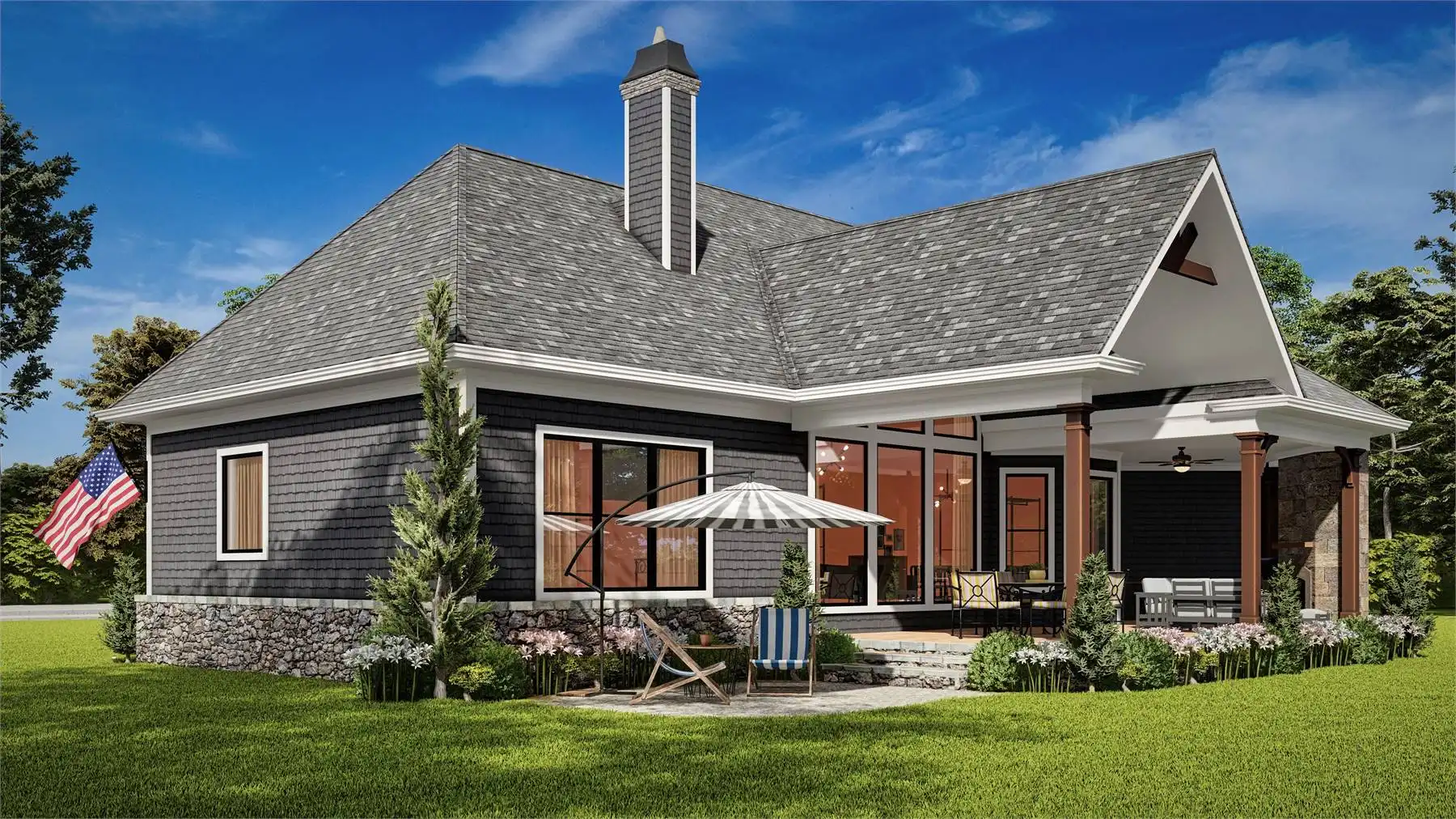House Plan 11624 is a thoughtfully designed one-story country ranch with inviting style and functional flow. The heart of the home is the grand lodge room, showcasing a vaulted ceiling and cozy fireplace, creating the perfect spot for gatherings. The kitchen offers efficient prep space, a pantry, and direct connection to both the dining room and breakfast area. A split-bedroom layout places the primary suite privately away from the secondary bedrooms for added comfort. Enjoy seamless indoor-outdoor living with a covered patio and an option to screen it in for year-round enjoyment. The angled two-car garage adds architectural interest and practical entry to the mudroom and kitchen. The optional bonus room above provides room to grow, whether used as a hobby space, guest retreat, or family hangout.