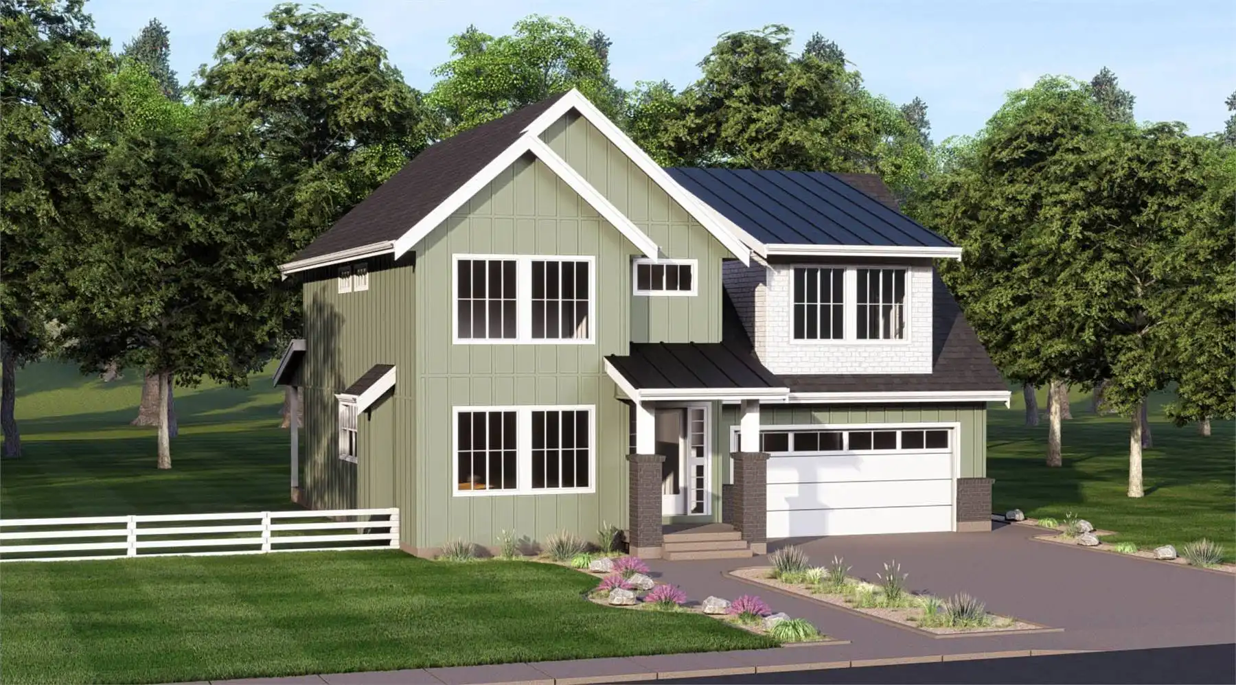 This 2,228 square foot design balances style, function, and the flexibility of multi-generational living. The main floor features a covered entry, foyer, and an open great room with a fireplace that flows into the dining area and L-shaped kitchen. A central island and pantry support easy meal prep, while access to the covered patio encourages outdoor relaxation. A flex den provides room to work or unwind. On the second floor, the primary suite is paired with an ensuite, and two additional bedrooms share a full bath. The home also includes a completely separate suite with its own living room, kitchen, dining space, bedroom, and full bath, offering privacy for guests, in-laws, or rental potential. A double car garage on the main level adds to everyday convenience.