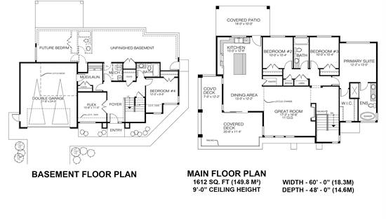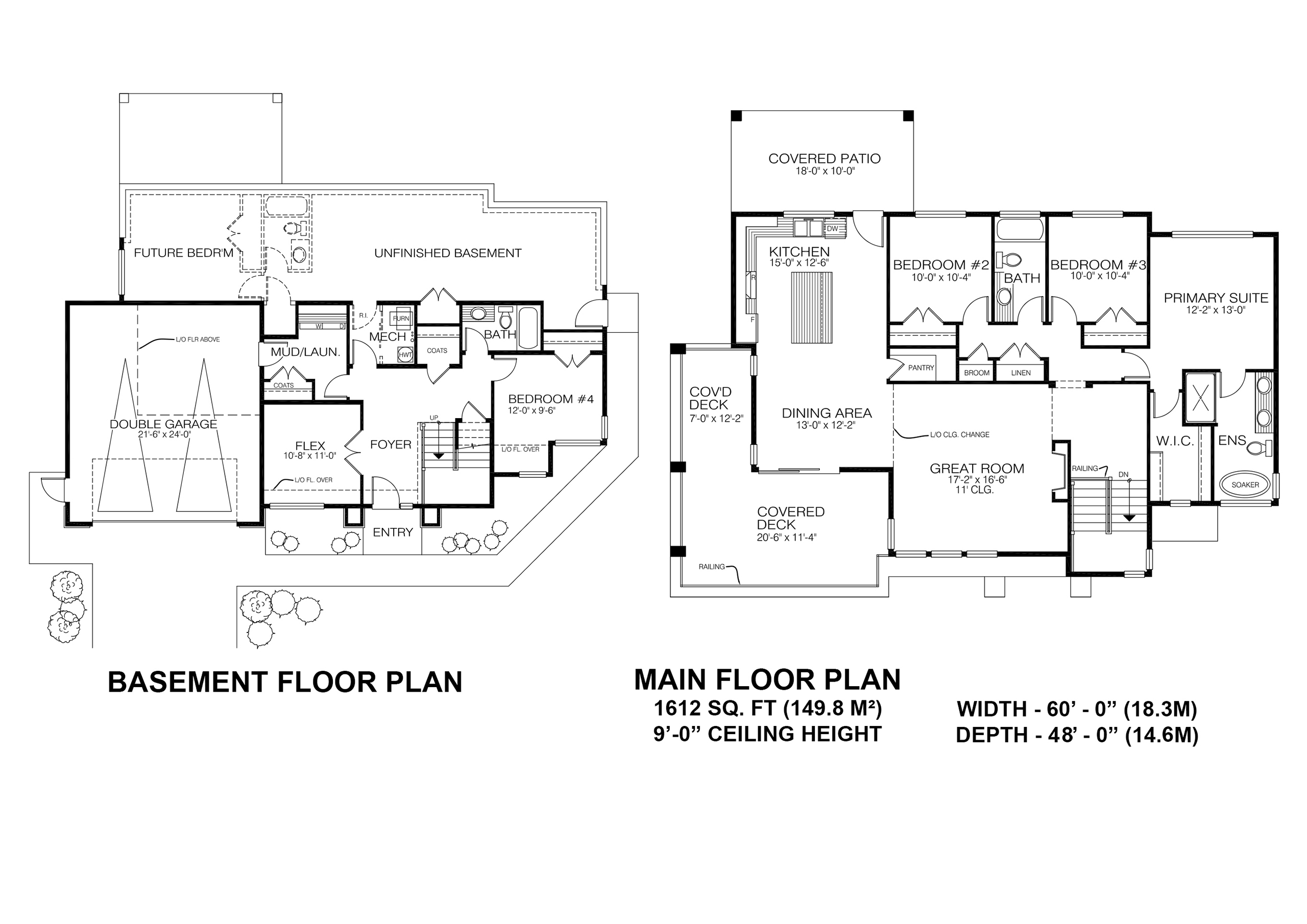House Plan 11699 blends smart layout with expansive outdoor connections, delivering 3,108 square feet across a flexible, multi level design. The ground floor includes a two car garage, welcoming foyer, flex room, and a bedroom with a full bath, ideal for guests or extended family. A combined mudroom and laundry room streamlines daily routines, while the unfinished basement area allows for future expansion, including space for an additional bedroom. The main living level centers around a bright great room that opens to a wrap around covered deck, creating a seamless flow between indoors and out. Large windows surround the dining area to showcase the views, while the L shaped kitchen with a central island anchors the space. Two secondary bedrooms share a full bathroom, and the primary suite features its own ensuite and a quiet retreat feel, with a covered rear patio completing the design.