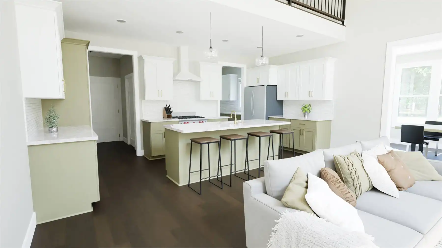 This charming 2,149 square feet Country home is designed with family comfort and inviting spaces in mind. The open L-shaped kitchen features a butler’s pantry, island, and peninsula with a casual eating bar that overlooks the family room. Vaulted ceilings and a cozy fireplace create a warm, spacious atmosphere perfect for gatherings. The main-floor primary suite includes a luxurious bath with dual sinks, a separate tub and shower, and a generous walk-in closet. Split bedrooms offer privacy for family members or guests, while the upstairs loft adds flexible space for work or relaxation. With its rear-entry garage, welcoming front porch, and classic Country charm, this home offers a cozy retreat that combines elegance and livability. Designed for both everyday comfort and special family moments, it’s a place you’ll love to call home.